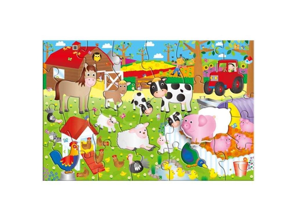 30 velkých dílků do sebe přesně zapadá a pomáhá vašemu dítěti ve zdokonalení motorických schopností. 8 dílků navíc znázorňuje kompletní zvířátka a tím pomáhájí dítěti v sestavení. Všechny dílky jsou vyrobené z kvalitního silného materiálu, který se snadno omývá. Baleno v praktickém kufříku. Vhodné pro děti od 3 do 6 let. Velikost po sestavení je 60 x 90 cm.bez nutnosti návodu