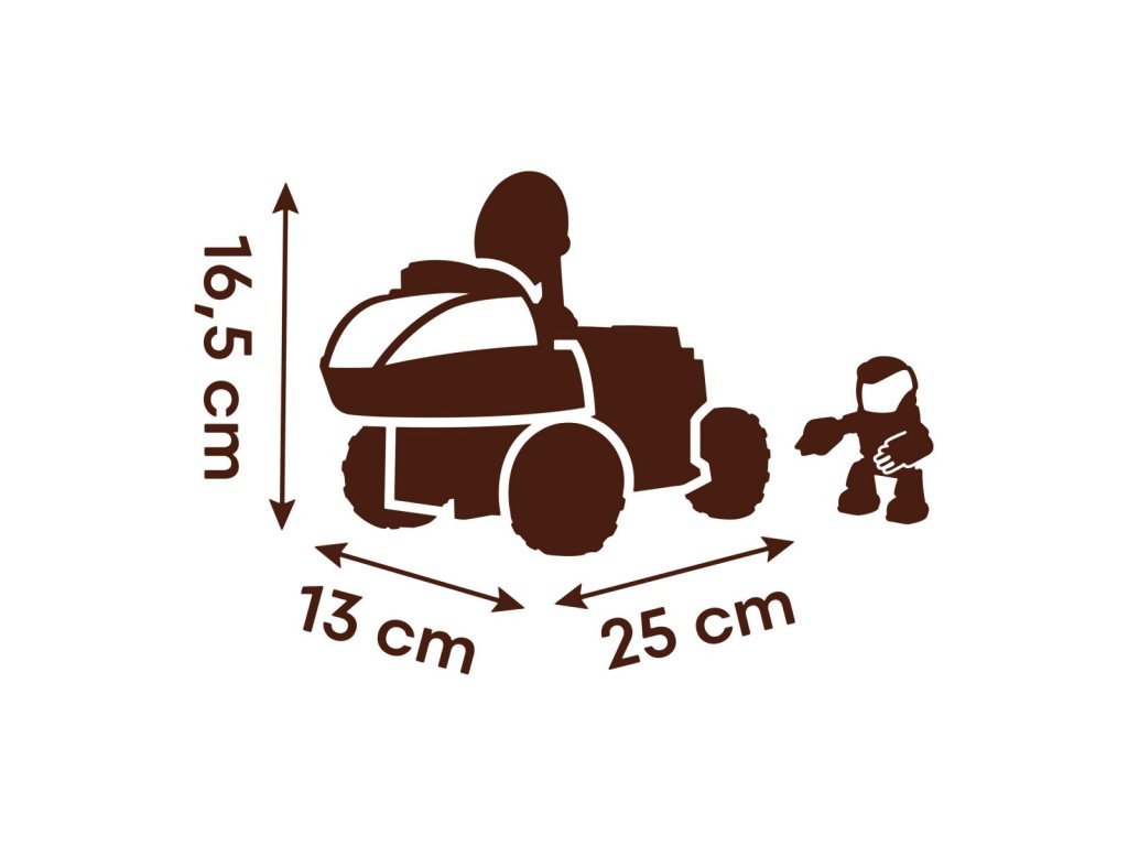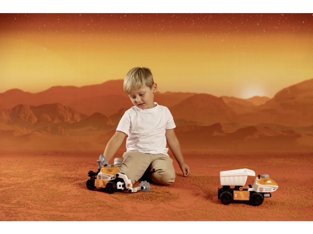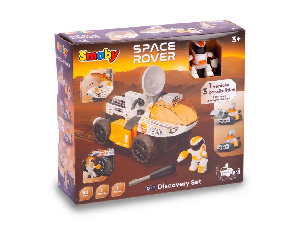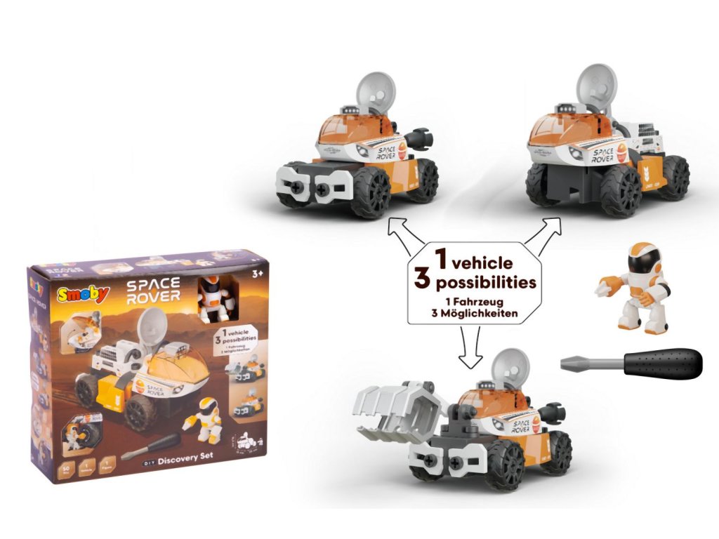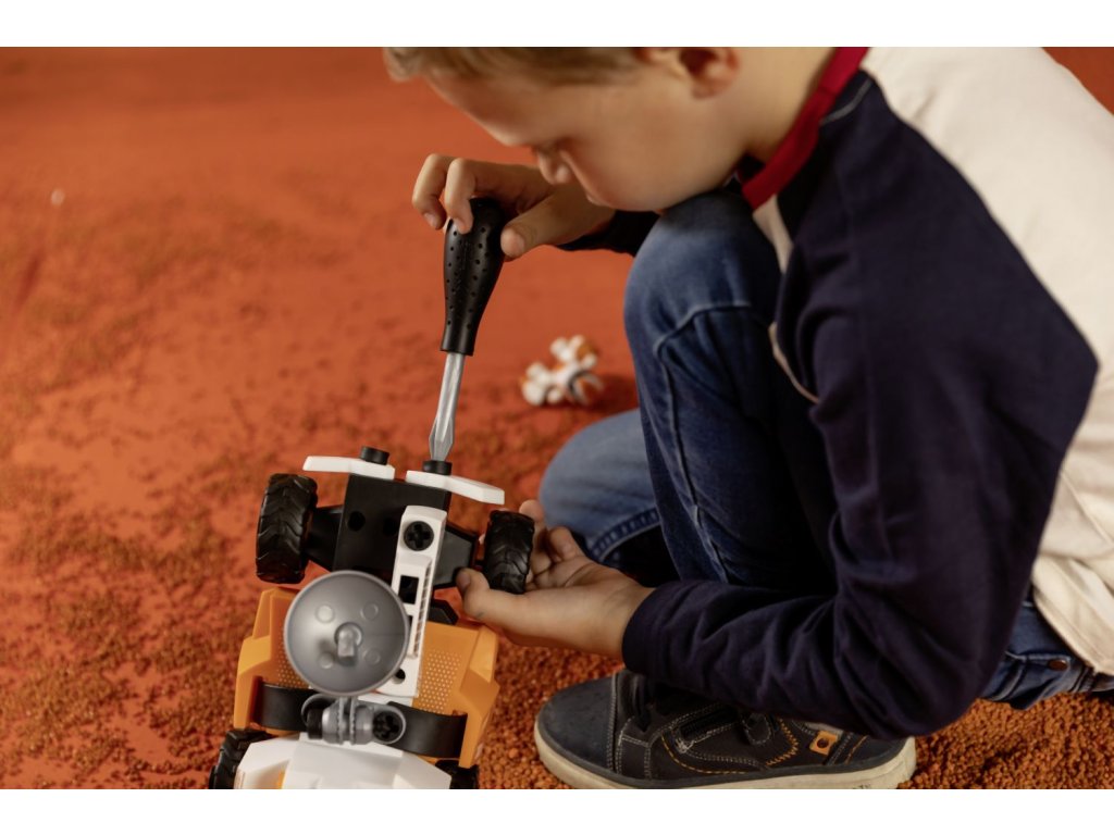 Postav svůj vlastní vesmírný Rover. Balení obsahuje šroubovák a 50 dílů, díky kterým lze sestavit 3 různá provedení vozítka. Součástí je také pohyblivá figurka kosmonauta, který má ruku - šroubovák. Rozměry vozítka: 25 x 13 x 16,5 cm.