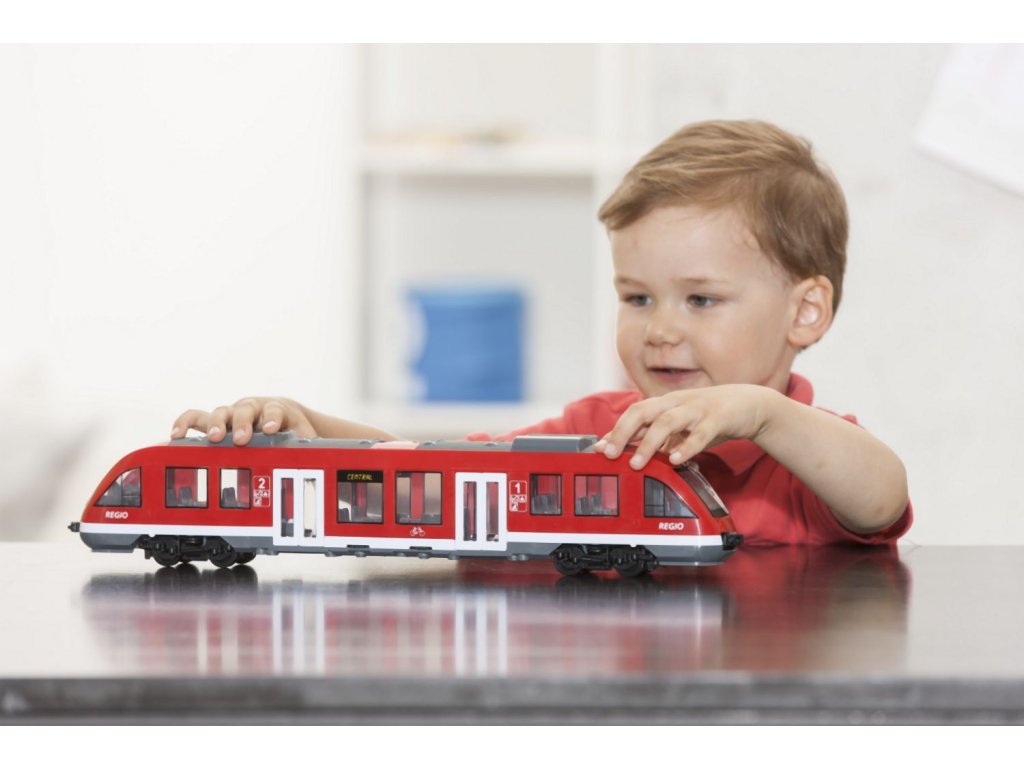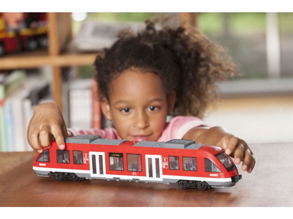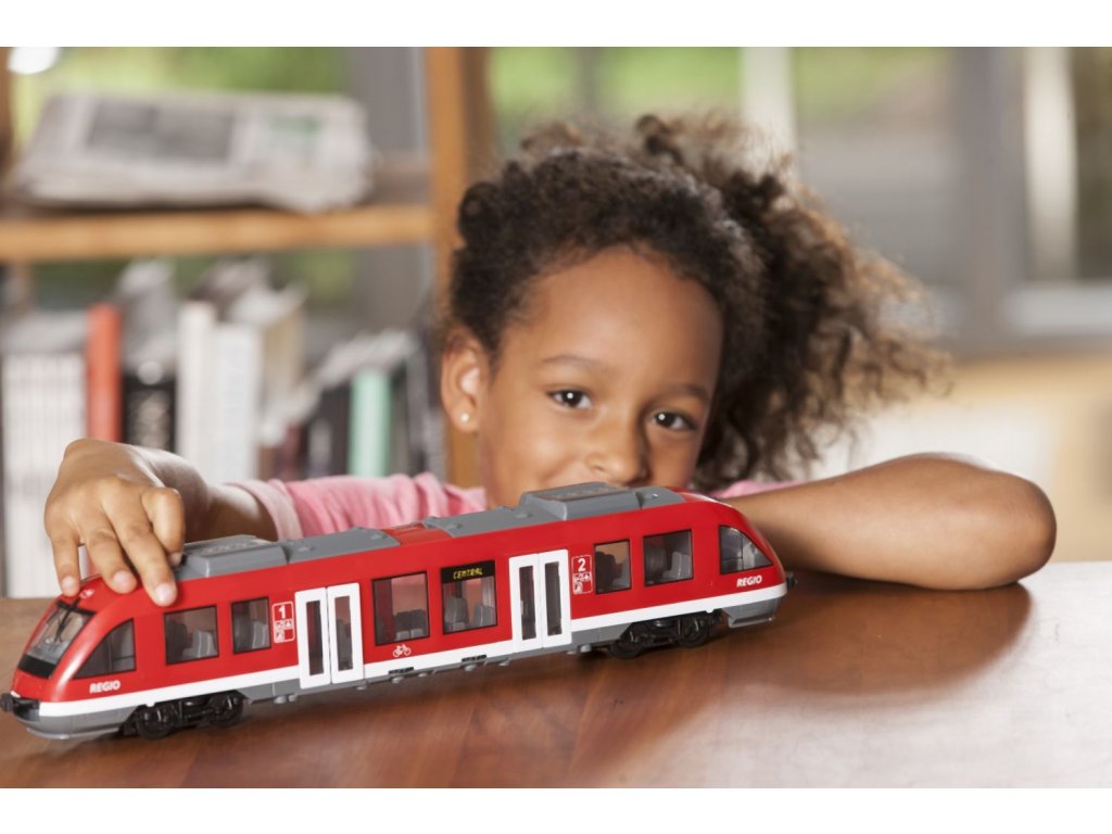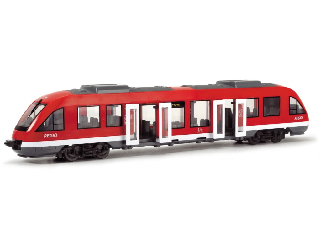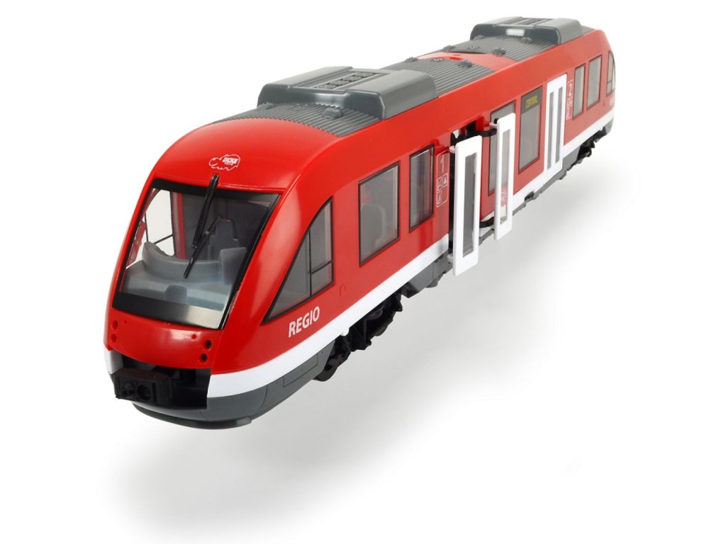 Vlak na volnoběh, plastový. Interiér, otevírací dveře a střecha. Měřítko 1:43, délka 45 cm.