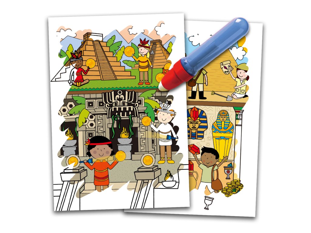 Naplňte pero vodou a začněte kreslit perem po lehce viditelném obrázku. Každým tahem se začnou objevovat části obrázku víc a víc až nakonec uvidíte celý obrázek v zářivých barvách.