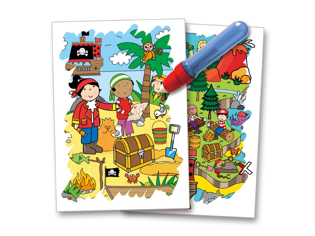 Naplňte pero vodou a začněte kreslit perem po lehce viditelném obrázku. Každým tahem se začnou objevovat části obrázku víc a víc až nakonec uvidíte celý obrázek v zářivých barvách.