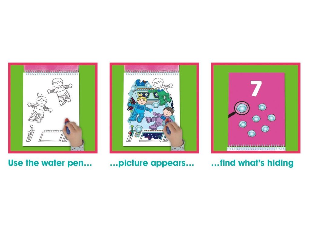 Vychází ze hry „Who‘s Hiding?“ (Na schovávanou). Tyto omalovánky obsahují ještě další aktivitu. Pomocí vodního pera dítě může odkrýt obrázek se zvířátky a předměty. Obrázky se vybarví a pak zase zmizí, a tak pořád dokola. Ideální pro cestování.