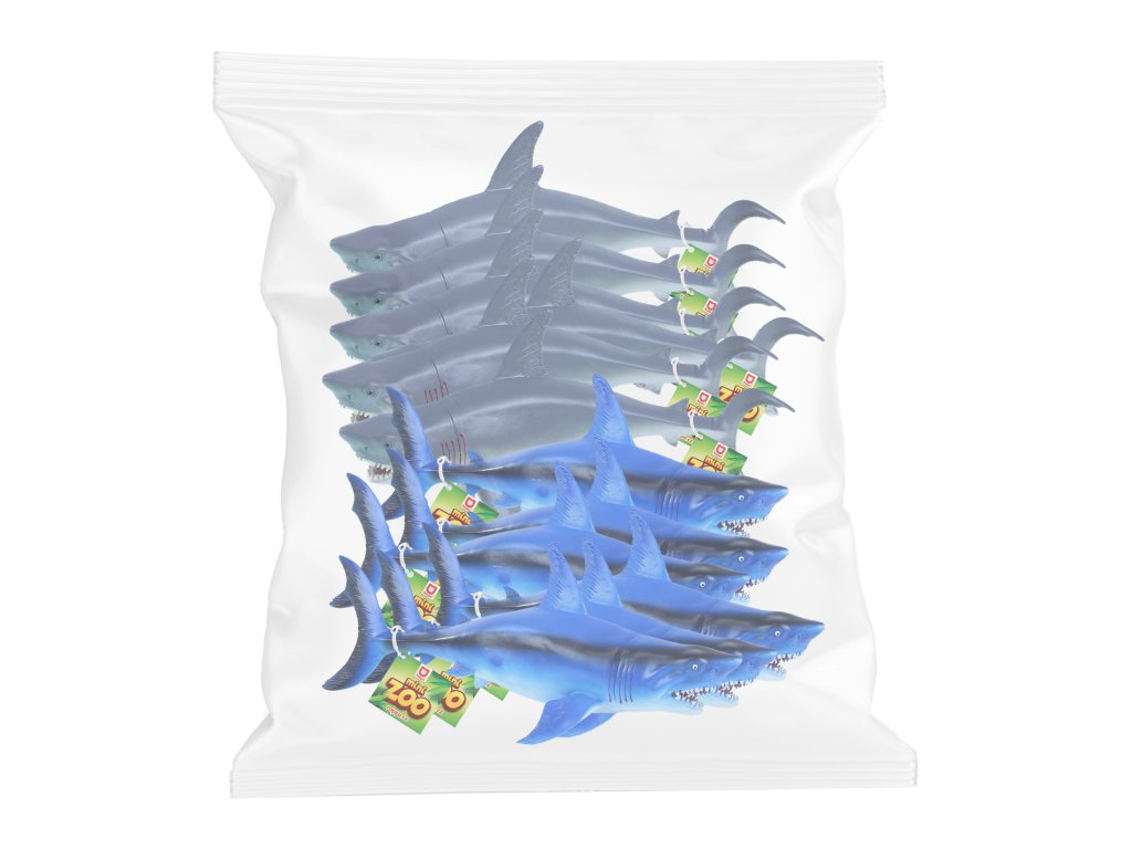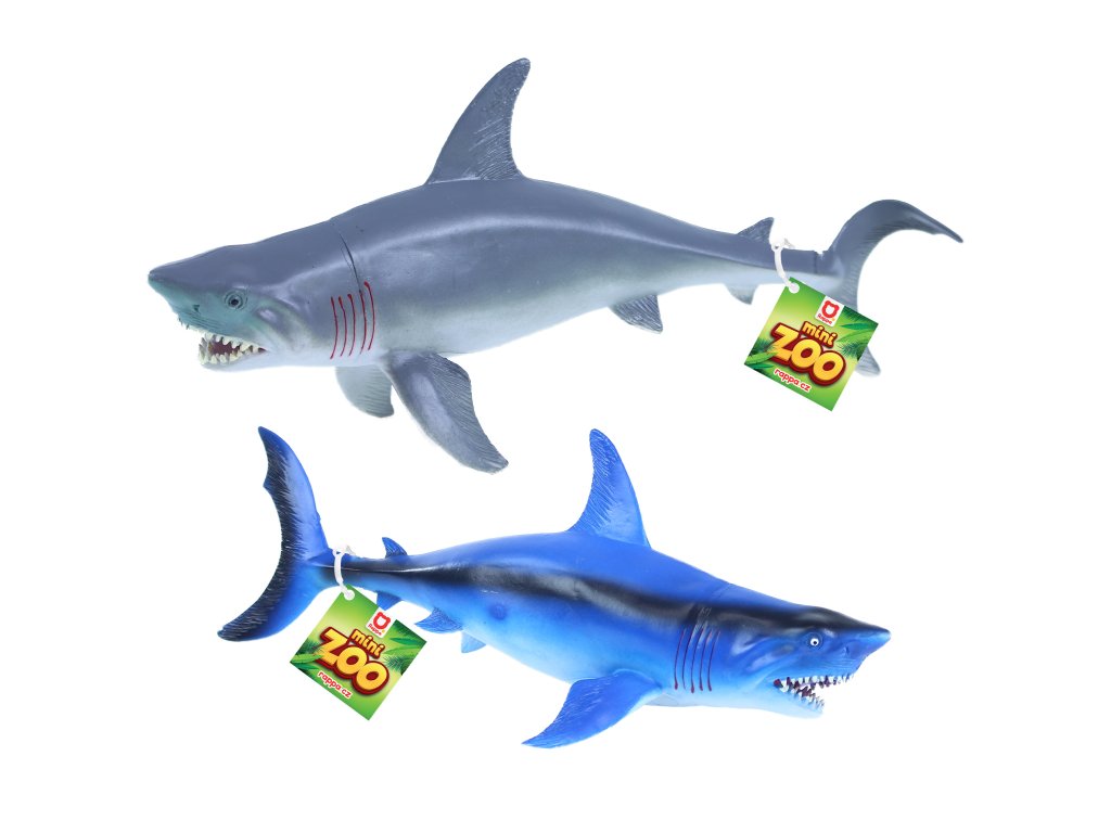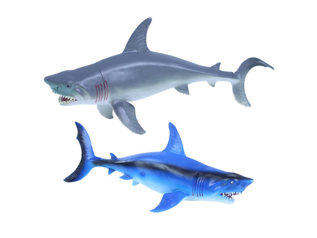 Plastový žralok, dva druhy. Velikost cca 34 cm. Prodejné pouze po celém balení 12 ks. Uvedena cena je za 1ks.