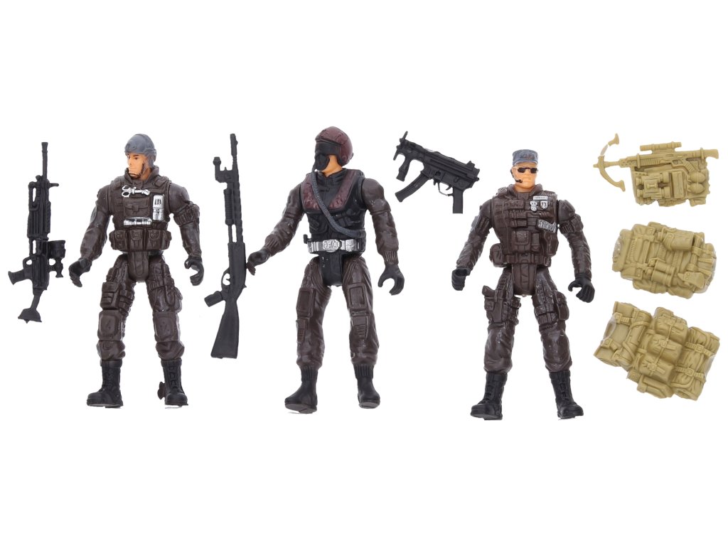 Vojáci sada figurek 11cm a zbraní. Obsah balení - 3 x figurka vojáka 11 cm, 3x batoh s výstrojí, 4x zbraň.