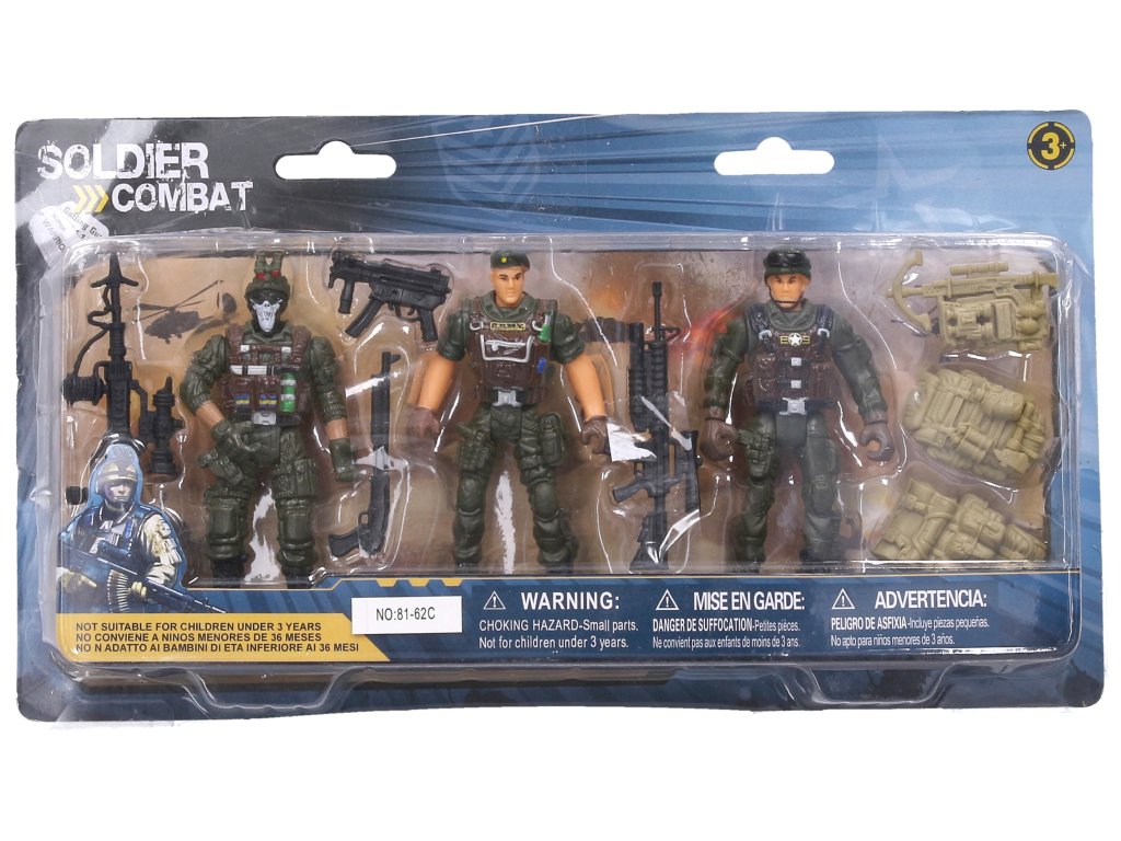 Vojáci sada figurek 11cm a zbraní. Obsah balení - 3 x figurka vojáka 11 cm, 3x batoh s výstrojí, 4x zbraň.
