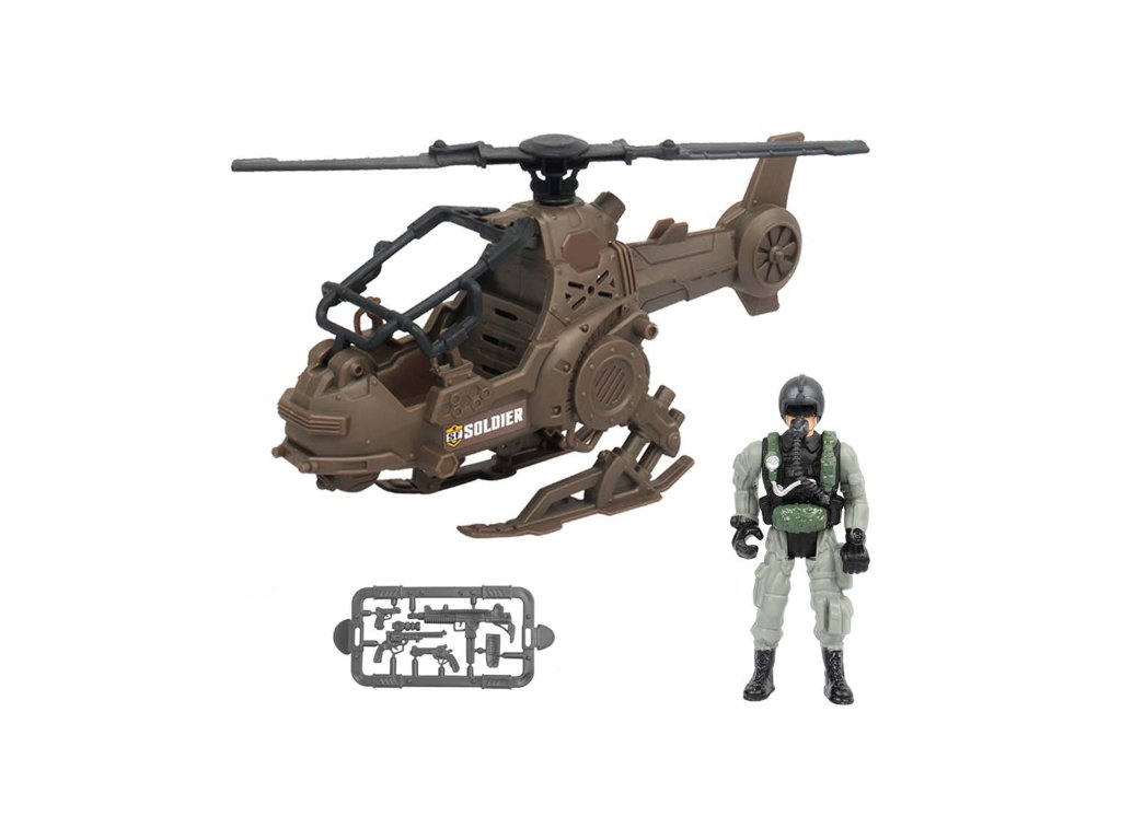 Vojenský vrtulník s pilotem. Velikost vrtulníku 23cm, figurka pilota 9,5cm.