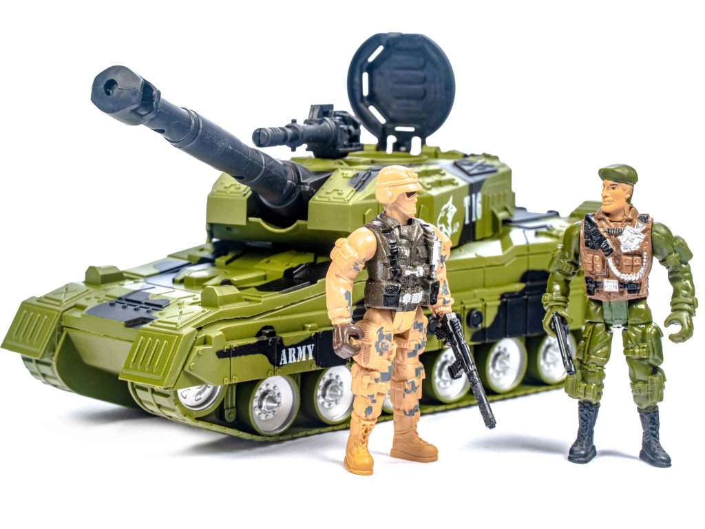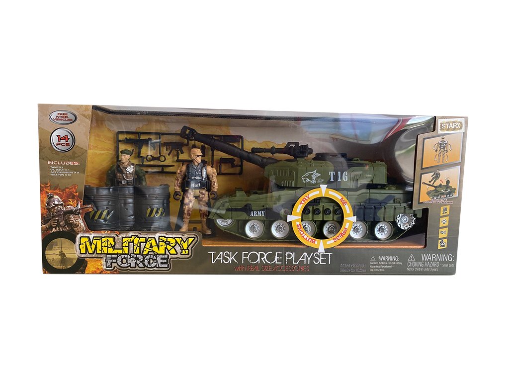 Vojenská sada se světelnými a zvukovými efekty. Obsahuje tank, postavičky vojáků a další příslušenství.