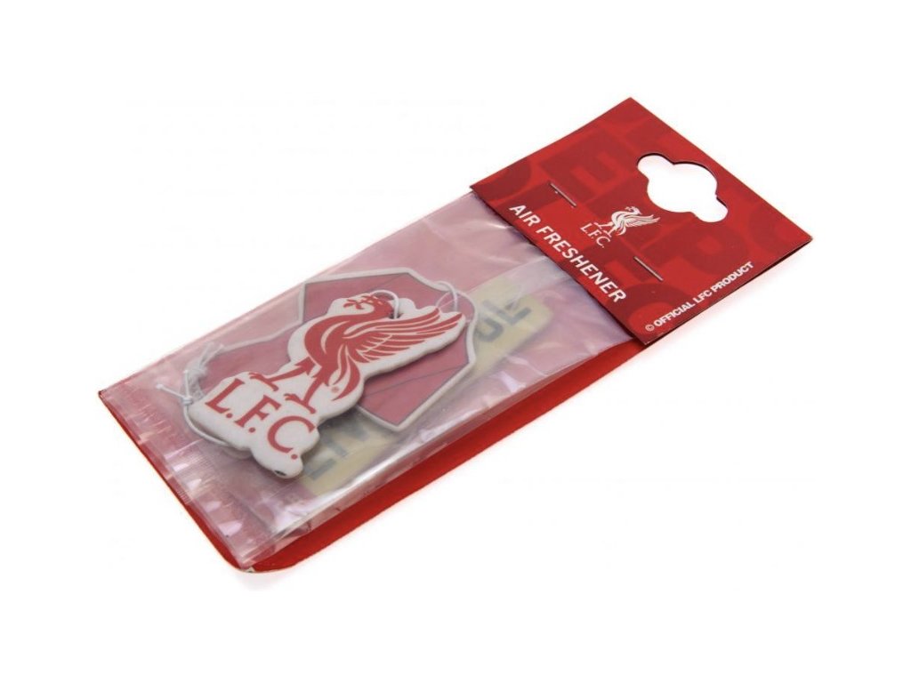 Oficiální produkt - osvěžovač vzduchu z katalogu výrobků se znakem, grafikou v klubových barvách slavného britského fotbalového klubu FC Liverpool.