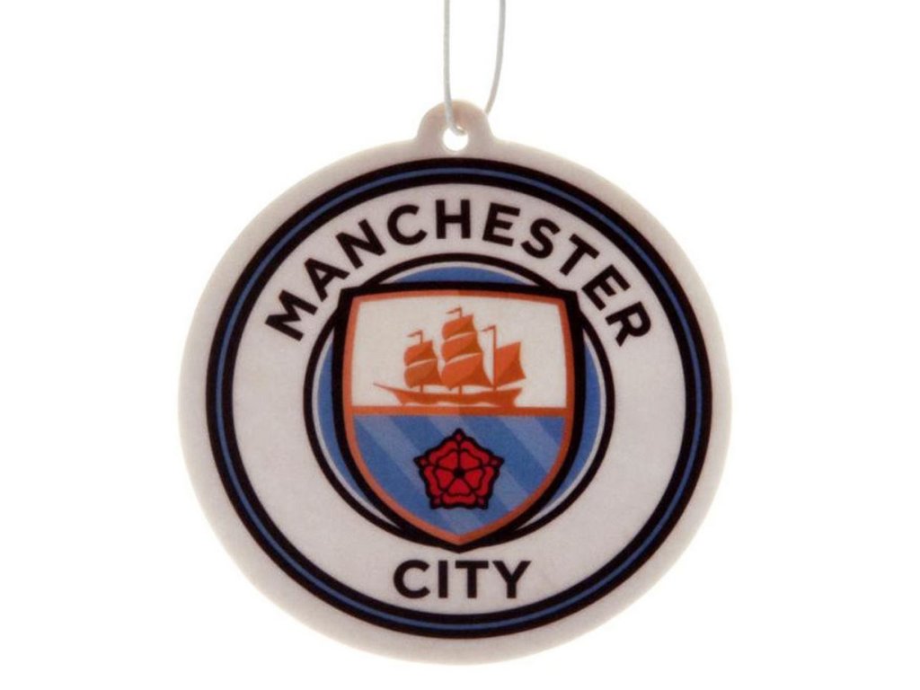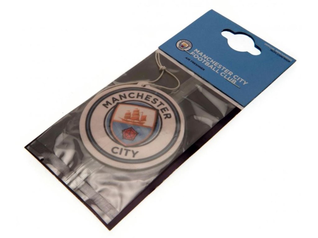 Oficiální produkt - osvěžovač vzduchu a doplňkové zboží z katalogu výrobků se znakem, grafikou v klubových barvách slavného fotbalového klubu FC Manchester City.