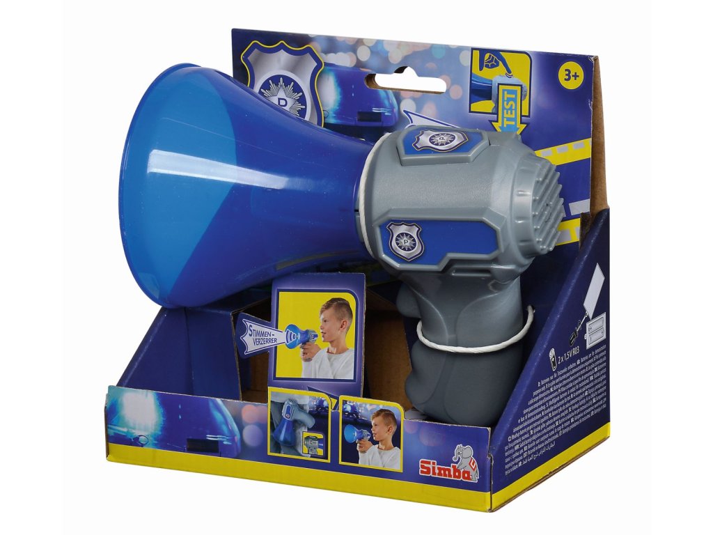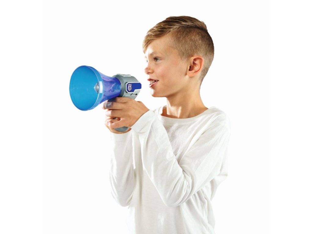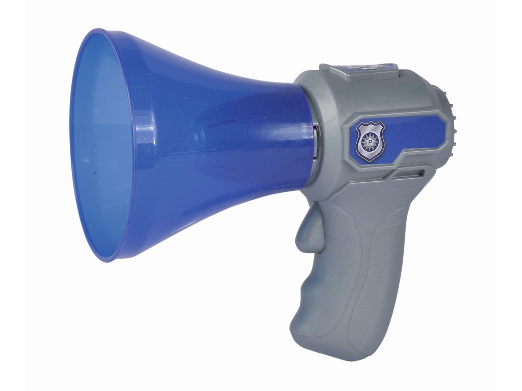 Policejní megafon s funkcí změny hlasu, tlačítko siréna, klip pro upevnění. Velikost 16 cm.