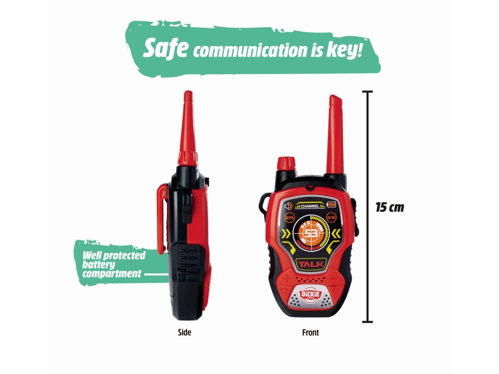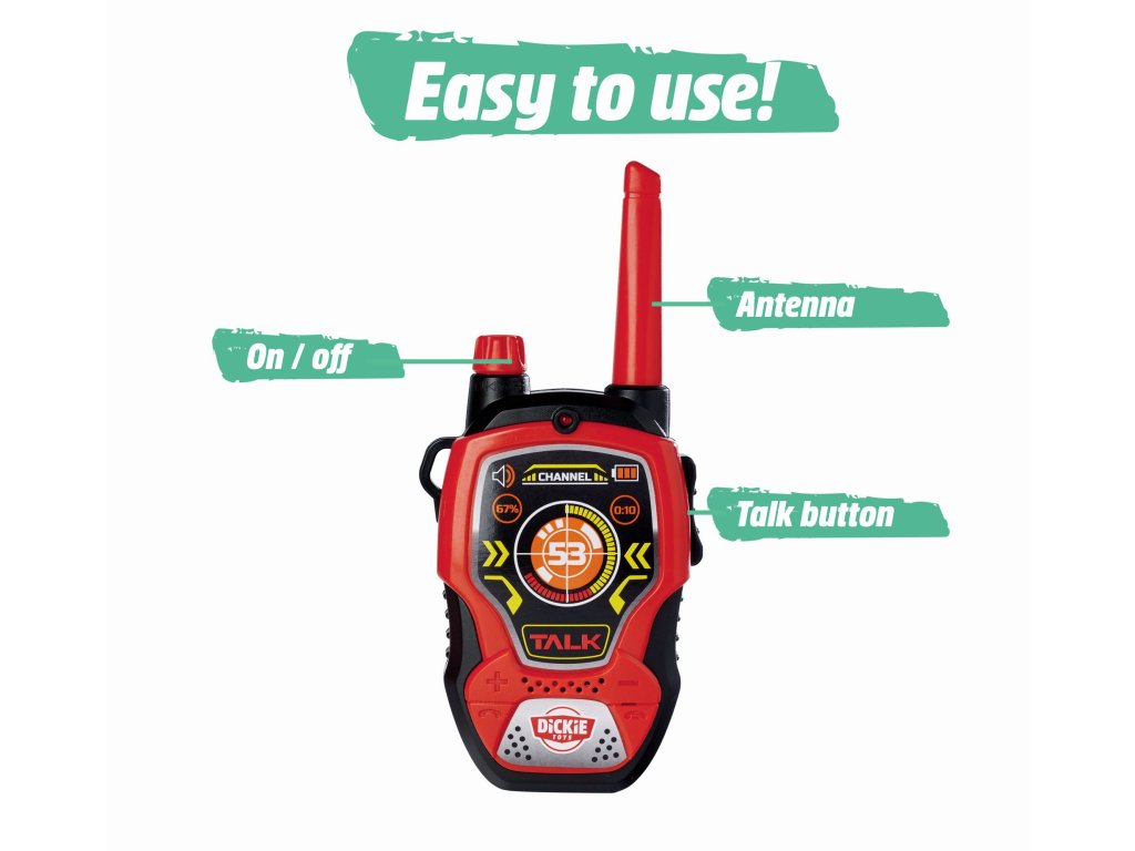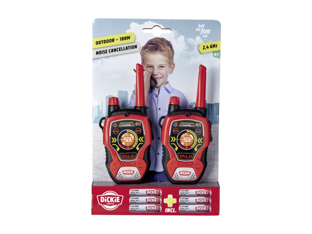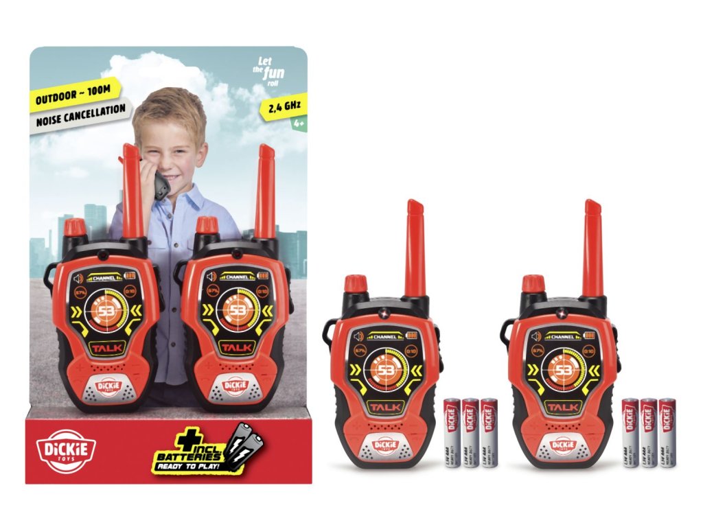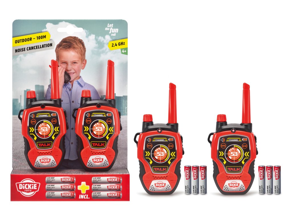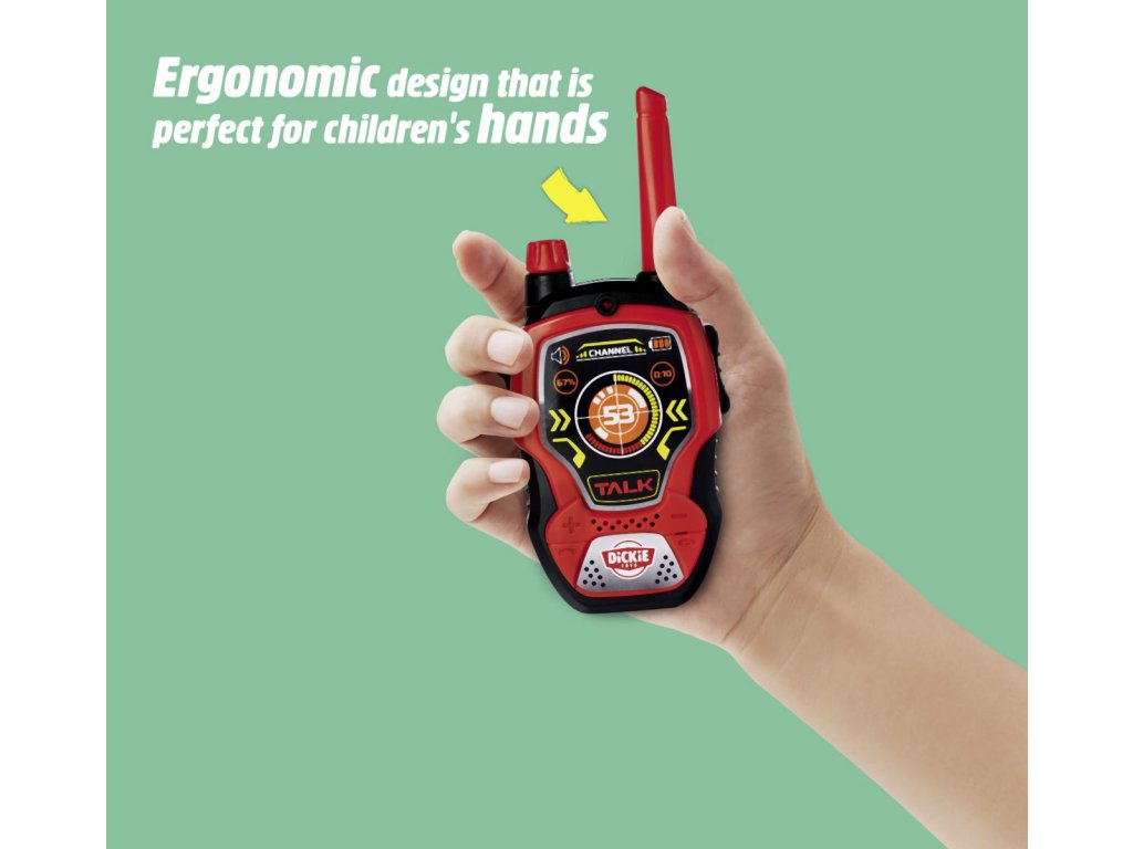 Dětské vysílačky 2,4 GHz s dosahem až 100 m, potlačení šumu, 2 ks v setu. Velikost 16 cm.