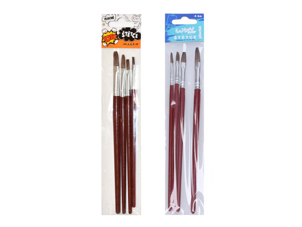 Klasické ploché štetce s dřevěnou násadou vhodné pro výtvarné a umělecké účely.