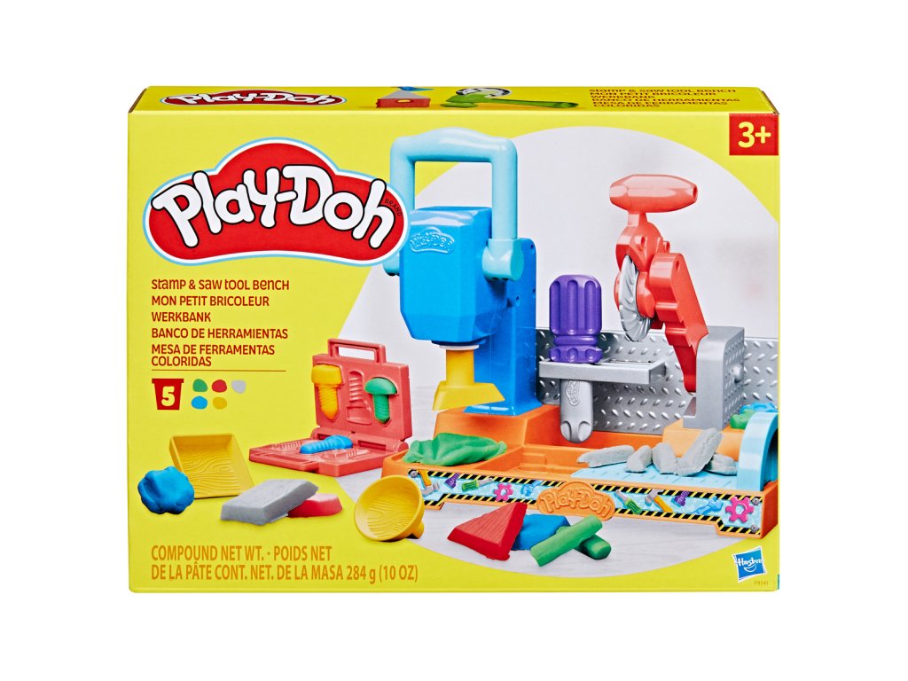 Překvapivě realistická dílna pro hravé hraní s pohyblivou pilou a ikonickými nástroji! Vytvořte tvar bloku, trojúhelníku nebo ozubeného kolečka a pak použijte posuvník a pilu k vyřezávání dalších tvarů. Vytvářejte své vlastní tvary a konstrukce s širokou škálou nástrojů, včetně kladiva, šroubováku a formičky na nářadí ve tvaru knihy pro nářadí! Balení obsahuje 6 kelímků barevné plastelíny, která je měkká a nelepí. Rozvíjí dětskou kreativitu a podporuje jemnou motoriku. Vhodné pro děti od 3 let.