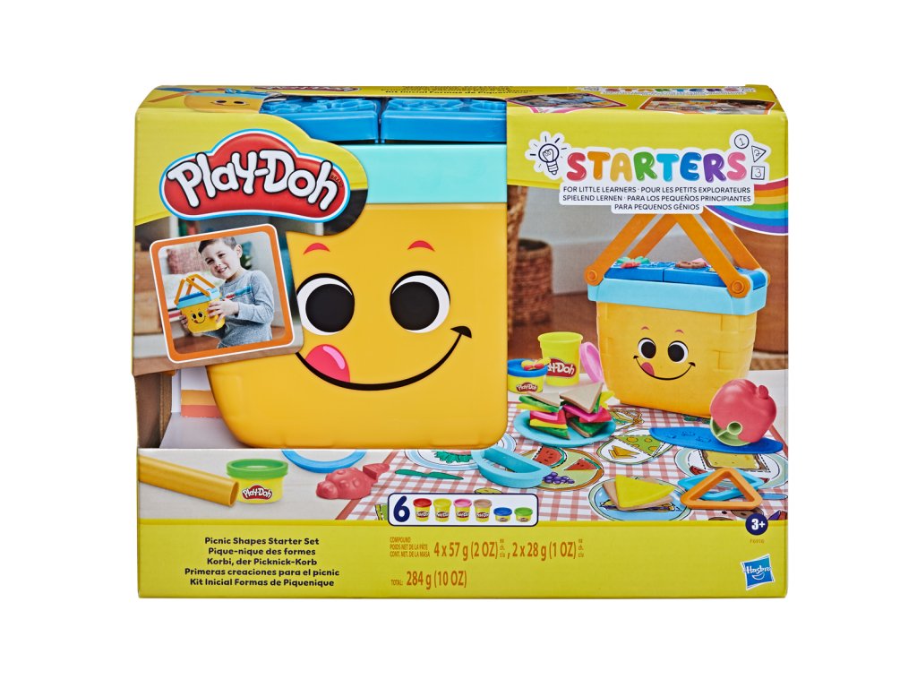 Ať prší, nebo svítí slunce, základní sada Piknikové tvary je ideální dětskou piknikovou sadou pro každou příležitost! Součástí balení je 12 základních nástrojů, 6 barev Play-Doh a piknikový koš, do kterého se nástroje ukládají. Zatímco děti zkoumají základní tvary, jako jsou čtverce, kruhy a trojúhelníky, mohou využít svou fantazii a skládat tyto tvary do sendvičů z hmoty Play-Doh. Představujte si piknikové příběhy s bláznivými pochoutkami a broučky na straně herní podložky s piknikovou dekou nebo podložku otočte, aby se děti mohly věnovat zábavnému řazení tvarů. Budou tak moci objevit radost z hraček Play-Doh – ať už půjde o jejich první základní sadu Play-Doh, či dárek pro děti od 3 let!