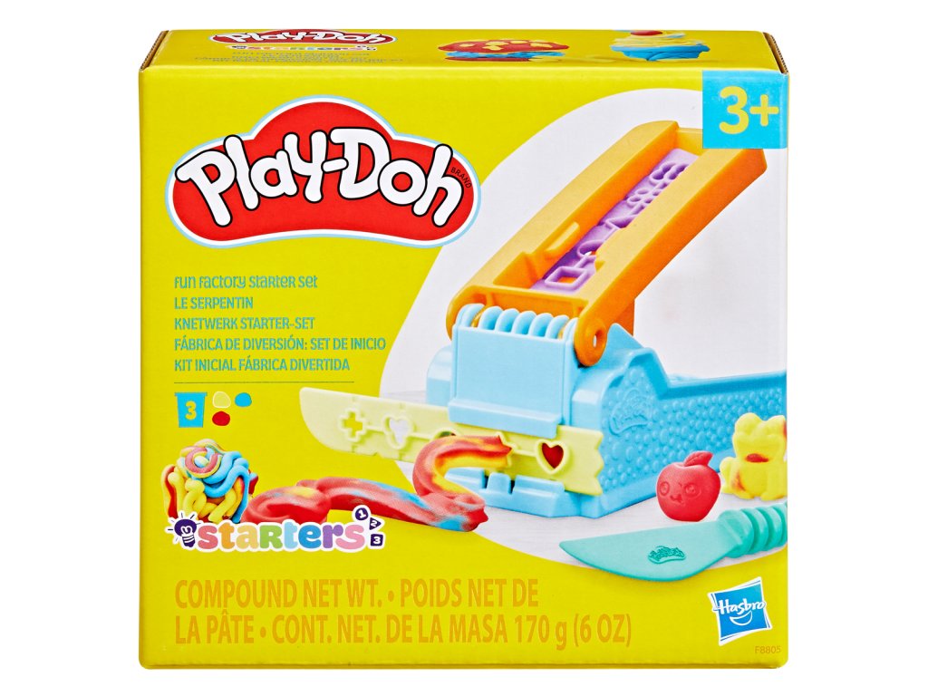 Tak mnoho hravých děl z modelovací hmoty může být vytvořeno pomocí sady Play-Doh starovací fabrika zábavy! Tato podnětná hračka podporuje děti v zábavných senzorických aktivitách a je skvělým nápadem pro volnou hru. Díky fabrice zábavy si můžete vybrat z 10 různých tvarů k vytlačování, používat zajímavé formičky a také dráhy se šablonami, které jsou uloženy na vrchní části hračky. Sada obsahuje 3 kelímky s modelovací hmotou Play-Doh v základních barvách (3x56 gramů). Děti si zábavnou formou rozvíjejí kreativitu a motoriku. Malé ručky dovedou barvy tvarovat do každé formy, která vystihne jejich představy, pak je zase rozmělnit a začít od začátku. Play-Doh startovací sada zábavy je součástí řady, která nabízí kreativní zábavu pro nejmenší děti již od 3 let.