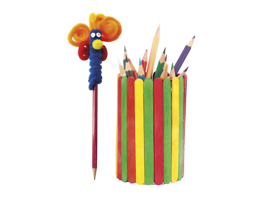 Plyšové modelovací drátky: Ohebné a měkké drátky potažené barevným plyšem. Snadno se tvarují a ohýbají, takže z nich můžeš vytvářet postavičky, zvířátka, nápisy nebo originální rámečky.