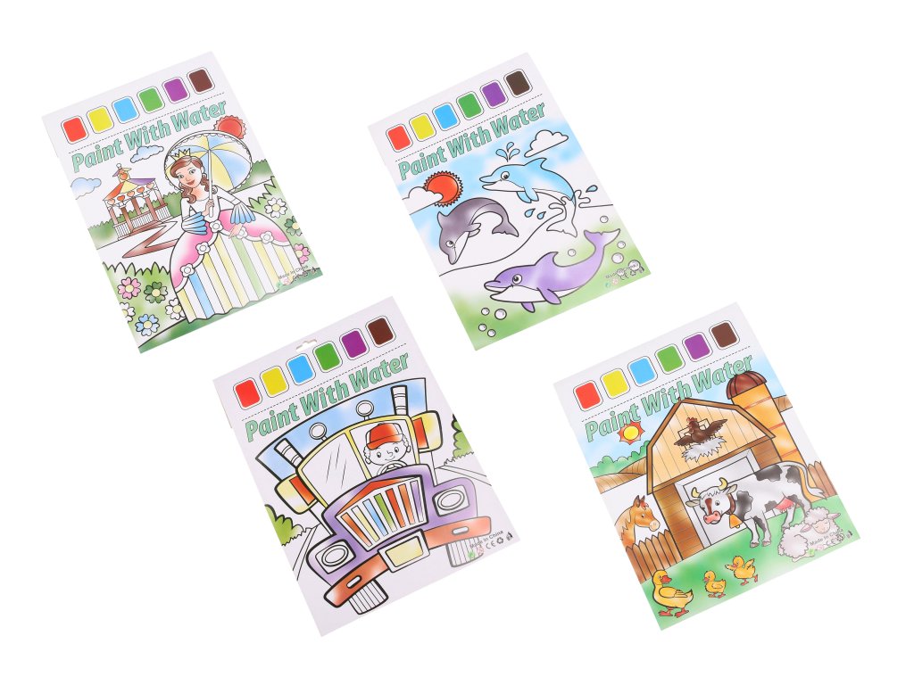 Kreativní set pro malování. Obsahuje 6 barev + štětec a 6 různých obrázků na vymalování.