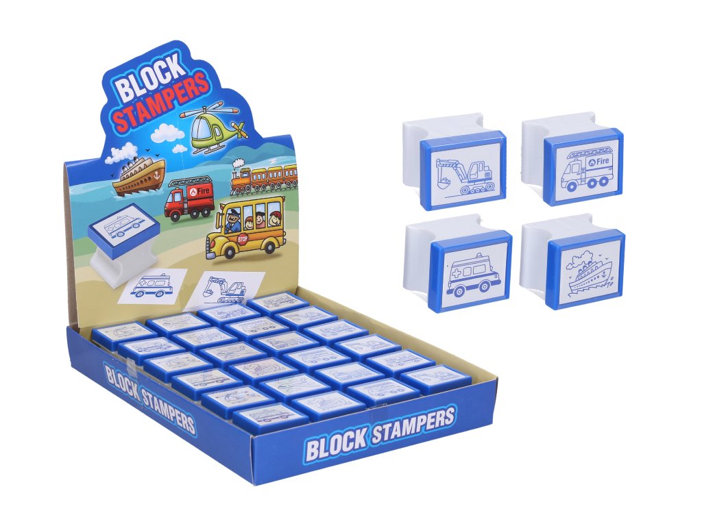 Razítko dopravní prostředky MIX. 24ks v display boxu.