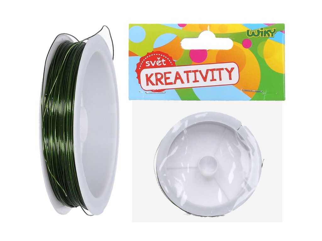 Vázací drátek dekorační zelený. Délka návinu 30 m, šířka 0,4 mm