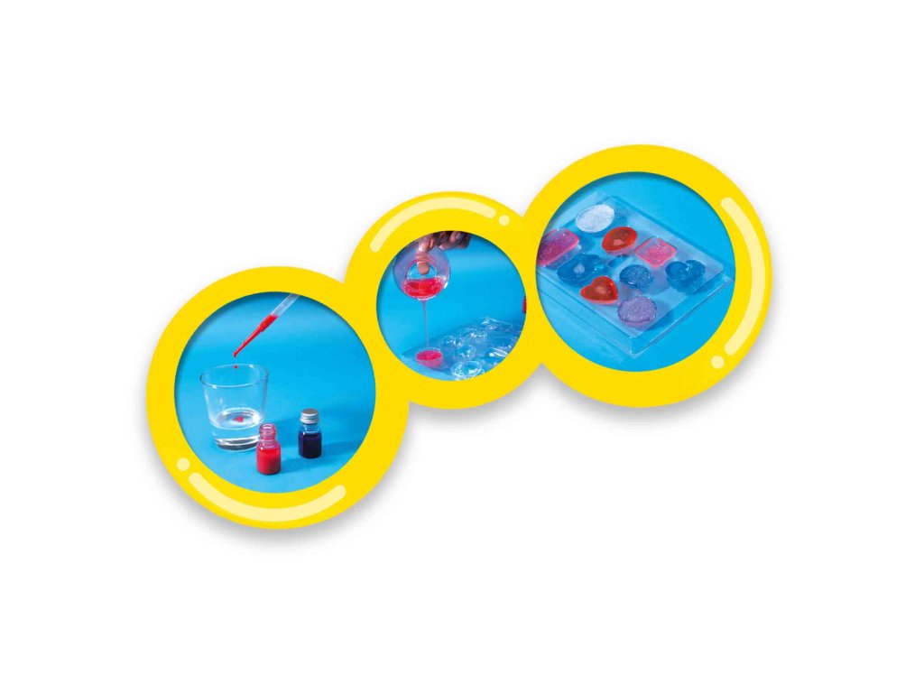 Tato fantastická sada obsahuje vše, co vaše děti potřebují k výrobě vlastního mýdla.Mohou si vyrobit pro svoje kamarády nebo maminky dárek v podobě vlastních originálních mýdel. Nebo si zpříjemnit koupání a vytvořit si mýdlo, které nikdo jiný nemá. Stačí jen rozpustit v mikrovlnné troubě glycerin, vmíchat barvu, třpytky a naplnit tvořítka. Sada podporuje kreativitu – můžete vyrábět mýdla v různých tvarech a zkoušet míchat barvy. Sada obsahuje: 1x plato s formičkami, 2x barvu – modrá, červená, 1x balení třpytek, 1x pipetu, 1x balení mýdla, návod. Baleno v krabičce. Rozměry balení: 20 x 30 x 4 cm. Nevhodné pro děti do 3 let. Věk: 7+