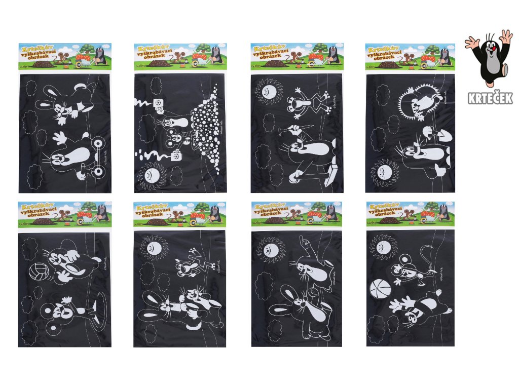 Vyškrabovací obrázek s motivem Krtek a jeho přátelé 19x26cm 8 různých vyškrabovacích obrázků.