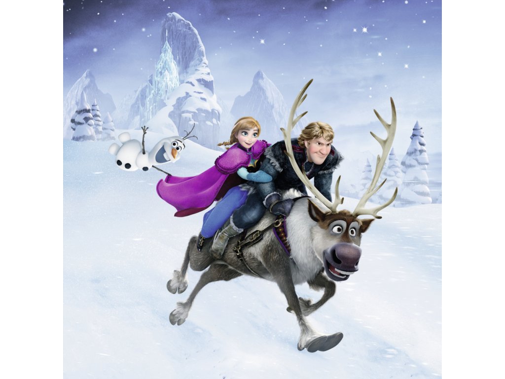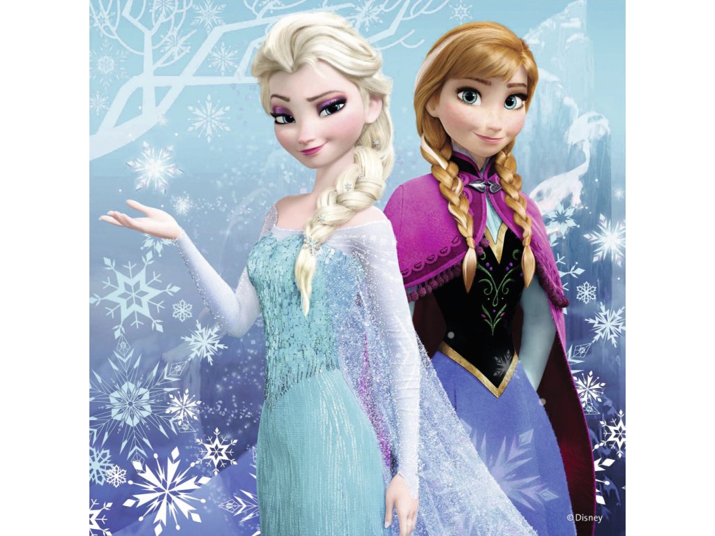 Puzzle s obrázkem Ledového království obsahující 3 x 49 dílků. Velikost složeného obrázku je 18 x 18 cm.