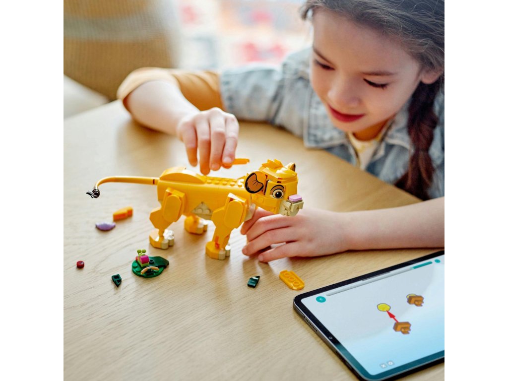 Darujte dětem a fanouškům Lvího krále od 6 let stavebnici LEGO® | Disney (43243) Lvíče Simba ze Lvího krále, která obsahuje sestavitelnou figurku, a oslavte 30. výročí filmu Lví král. Figurka šikovného lvíčete Simby z řady LEGO | Disney má otočnouhlavu a pohyblivé nohy a ocas a součástí stavebnice je také list a 4 „jedlí brouci“. Tato sestavitelná hračka představuje zábavný nápad na Disney dárek pro děti a milovníky filmů a bude se skvěle vyjímat na výstavce doma i v kanceláři. Model se pyšní c elou řadou detailů a funkcí, které inspirují ke kreativnímu hraní. Model lze kombinovat s dalšími dětskými stavebnicemi z řady LEGO | Disney (prodávají se samostatně) a má ideální rozměry na hraní doma i na cestách. Děti se mohou těšit na nenáročné a intuitivní stavitelské dobrodružství se zábavnou aplikací LEGO Builder. V ní si lze přibližovat a otáčet modely ve 3D, ukládat stavebnice a sledovat postup.