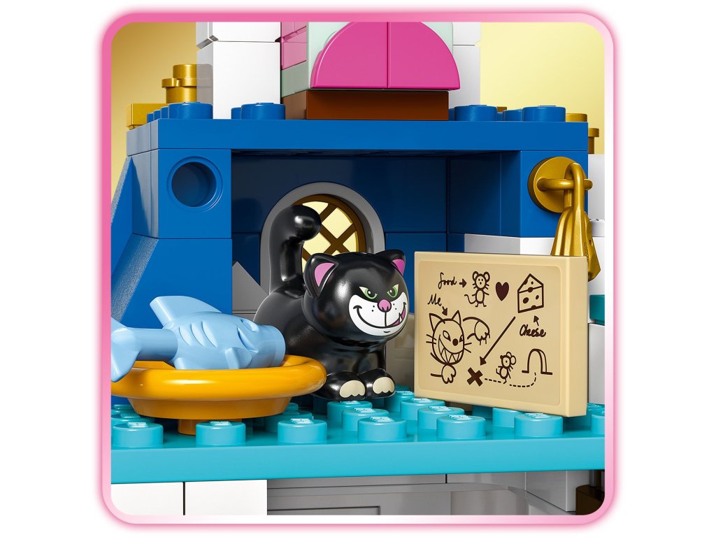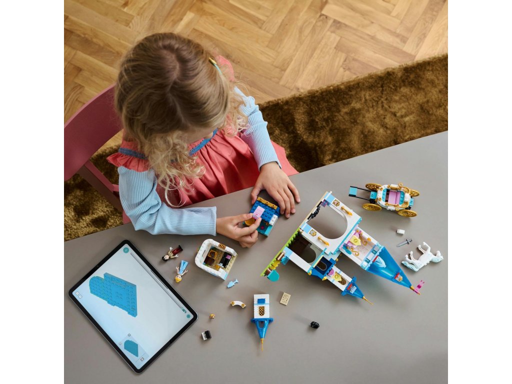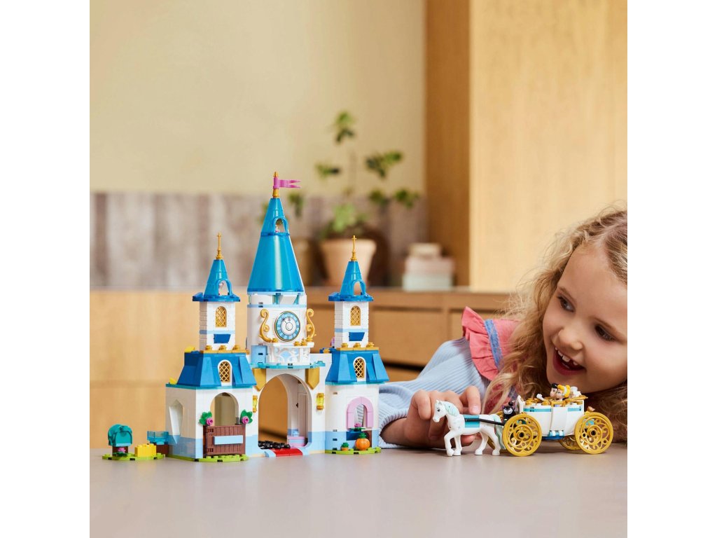 Inspirujte děti od 6 let k nekonečnému hraní na fantasy příběhy se stavebnicí LEGO® | Disney (43275) Popelčin zámek a kočár s koňmi. Stavebnice obsahuje sestavitelný dvoupatrový zámek s tanečním sálem s otáčející se podlahou, šicí dílnu a 3 místnosti v patře. K hradu je připojena stáj se senem a sedlem pro figurku LEGO | Disney koně. Součástí je také kočár s postrojem a prostor pro minipanenky LEGO | Disney Popelky a krásného prince a figurky zvířat LEGO | Disney Lucifera a Guse a řada herních doplňků. Tato stavebnice představuje zábavný dárek pro holky i kluky, kteří milují fantasy hračky, a při stavění jim pomůže zvýšit sebevědomí. Model lze kombinovat s dalšími stavebnicemi LEGO a stavebnicemi LEGO | Disney (prodávají se samostatně). Děti se navíc můžou těšit na nenáročný a intuitivní stavitelský zážitek s aplikací LEGO Builder. V ní si lze přibližovat a otáčet modely ve 3D, ukládat stavebnice a sledovat postup.