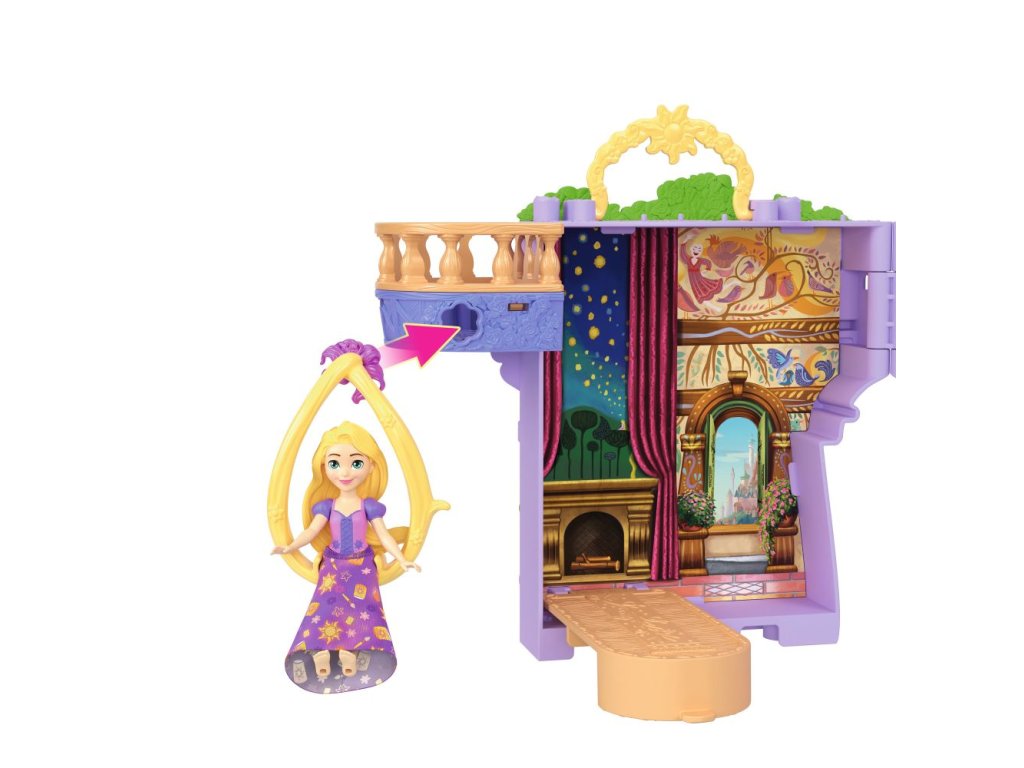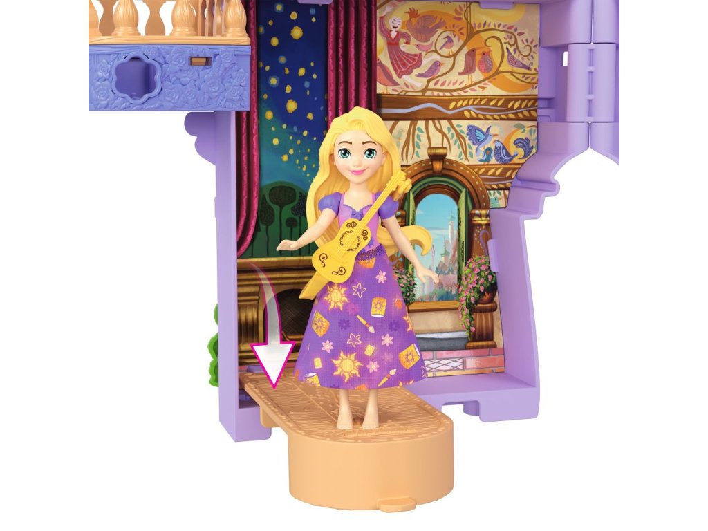 Fanoušci budou nadšeni z tohoto herního setu inspirovaného pohádkou Na vlásku od společnosti Disney! Tento malý domeček pro panenky ukrývá několik herních zón a obsahuje malou panenku Lociky (přibližně 9 cm velká), jednoho zvířecího kamaráda, nábytek a další doplňky.