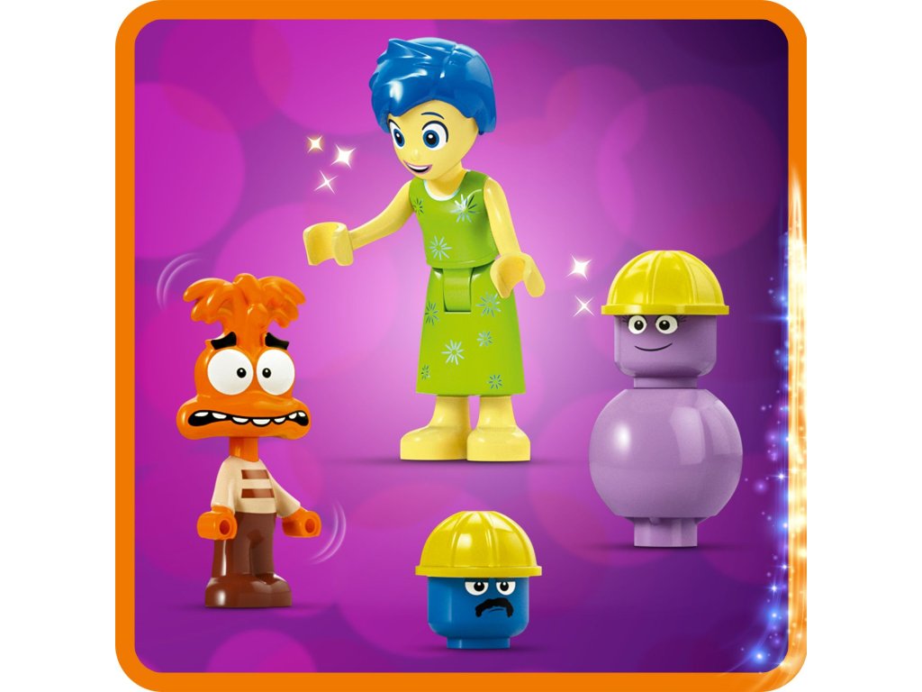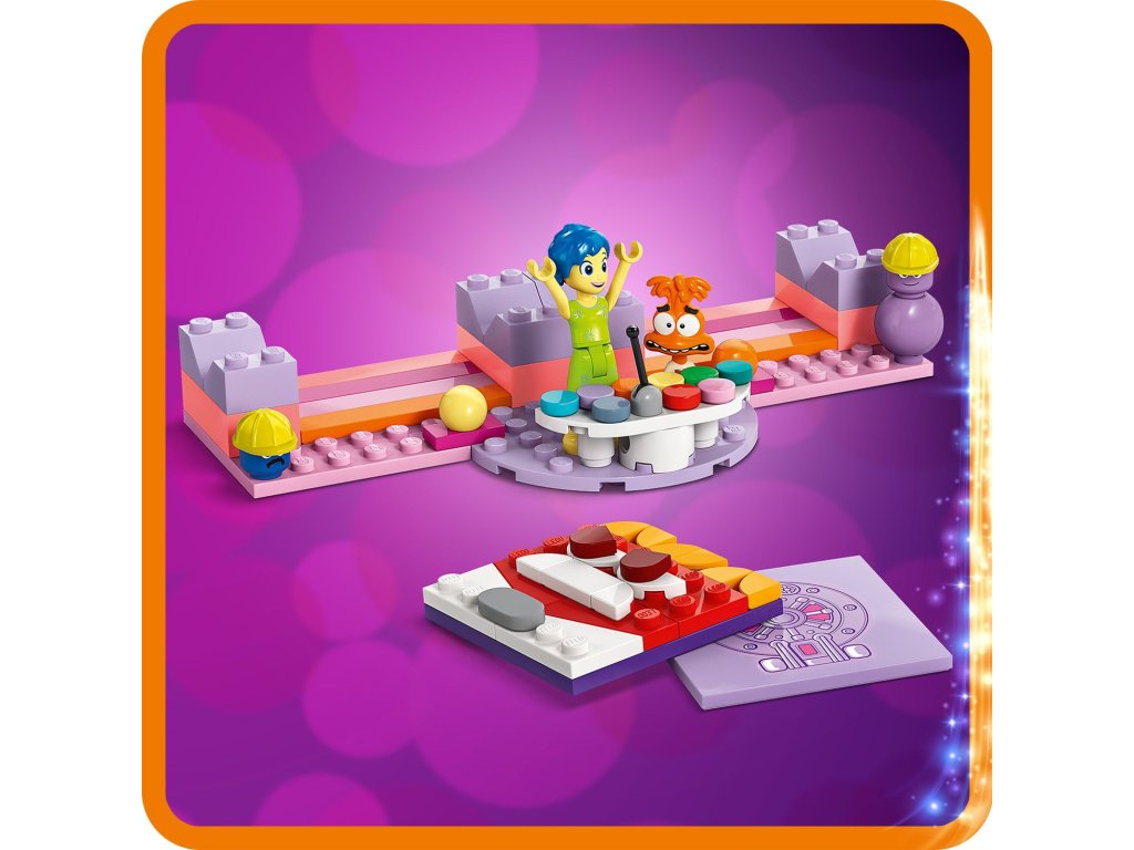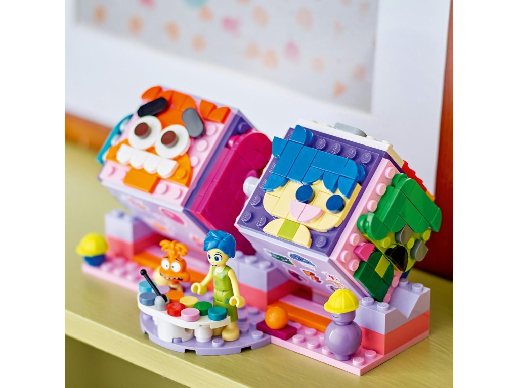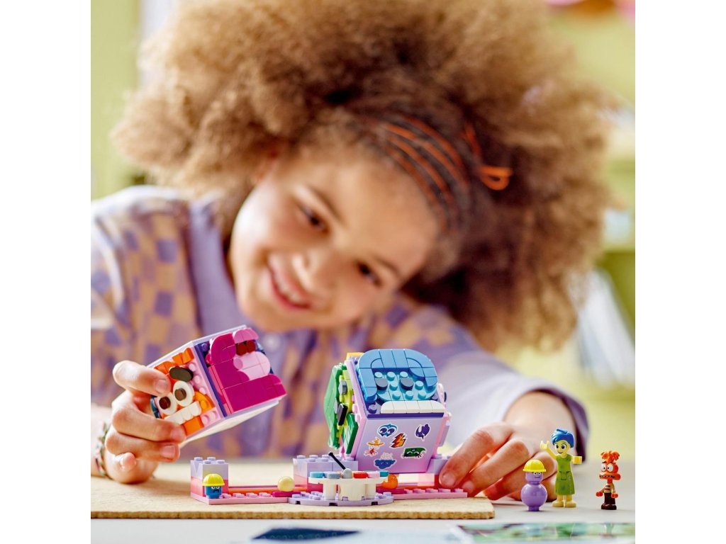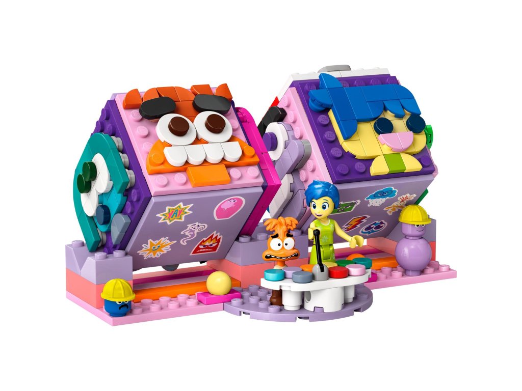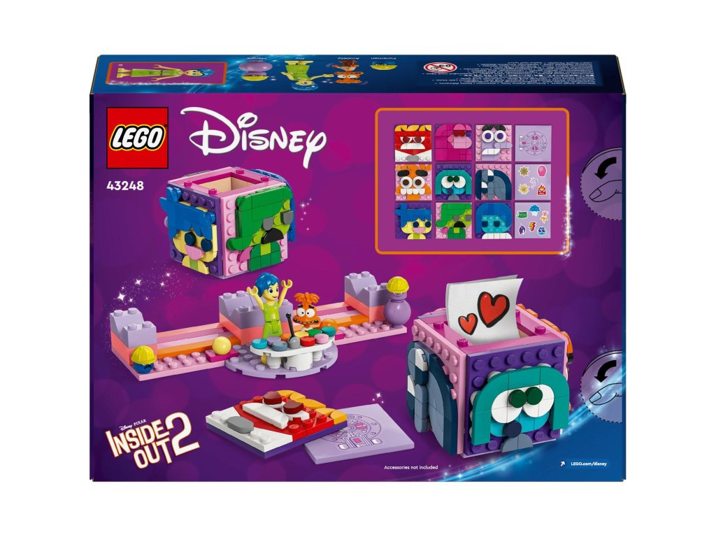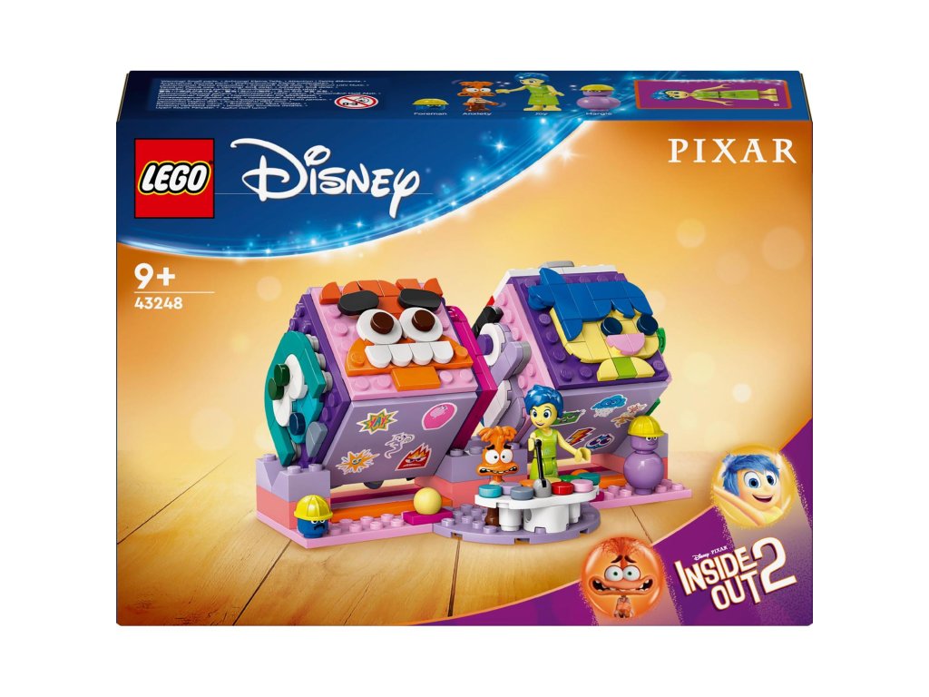 Potěšte děti a fanoušky filmu V hlavě 2 od 9 let stavebnicí LEGO® | Disney (43248) Kostky nálad podle filmu V hlavě 2 z dílny studia Pixar. Součástí jsou 2 sestavitelné kostky s místem pro malé poklady, 9 podložek s náladami, podstavec na vystavení kostek, minipanenky LEGO | Disney Radost a Úzkost od Pixaru s barevnými paměťovými kuličkami odpovídajících barev a figurky LEGO | Disney pracovníků mysli Foremana a Margie s pracovními helmami.