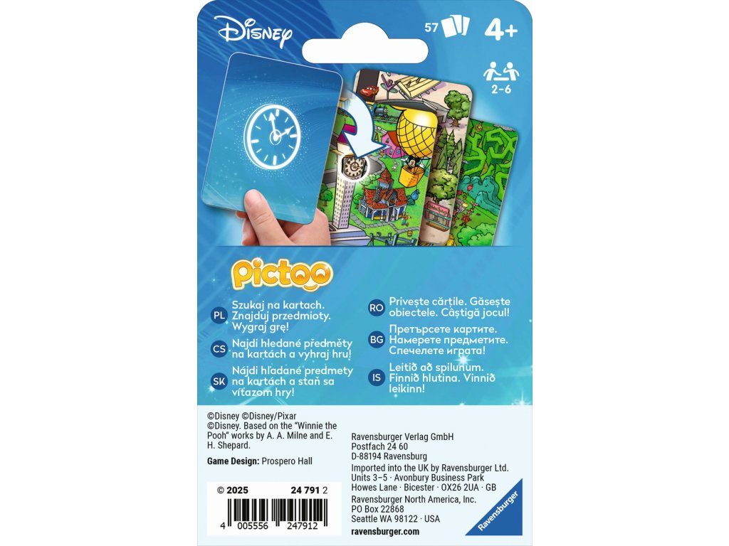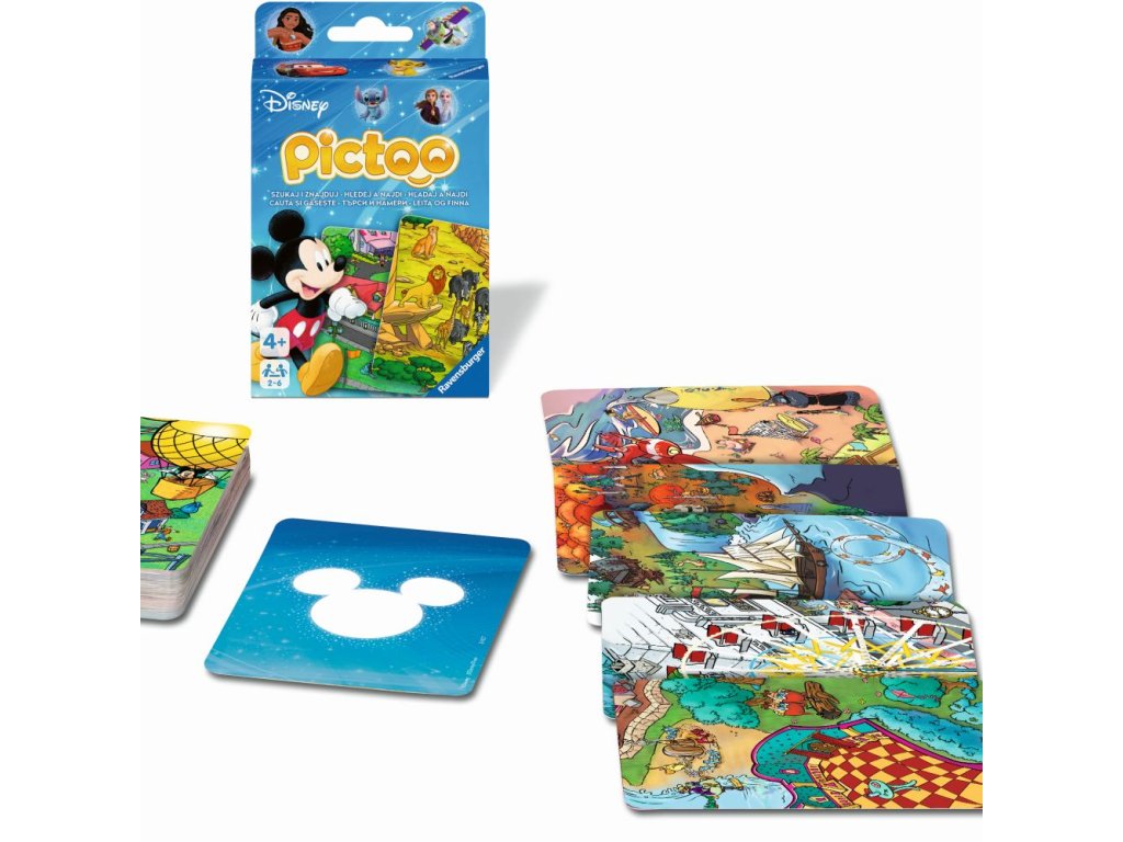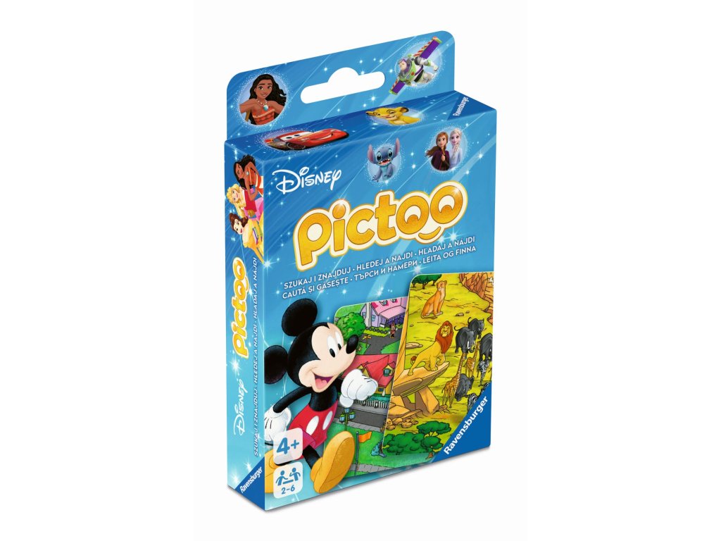 Pictoo je rychlá hra, ve které hráči hledají objekty na kartách a snaží se co nejdříve zbavit všech svých karet. Vyhrává ten nejrychlejší! Ideální pro rodiny a přátele, kteří si užijí hledání v prostředí oblíbených postav a motivů ze světa Disney.