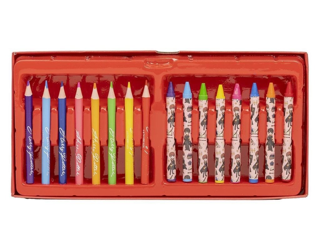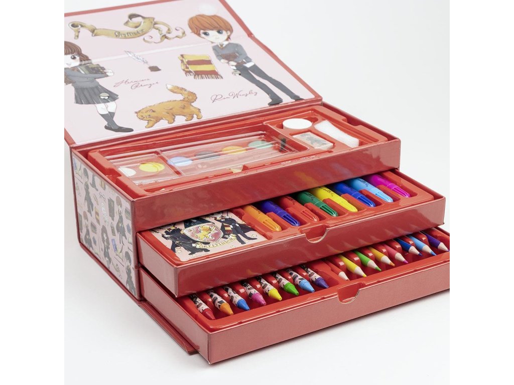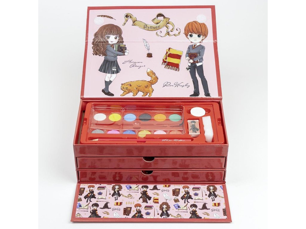 Kreativní kufřík Harry Potter: Kawaii (blok, pastelky, voskovky, vodovky, štětec, gumy, tužka, fixy | 10 x 27 x 14 cm)