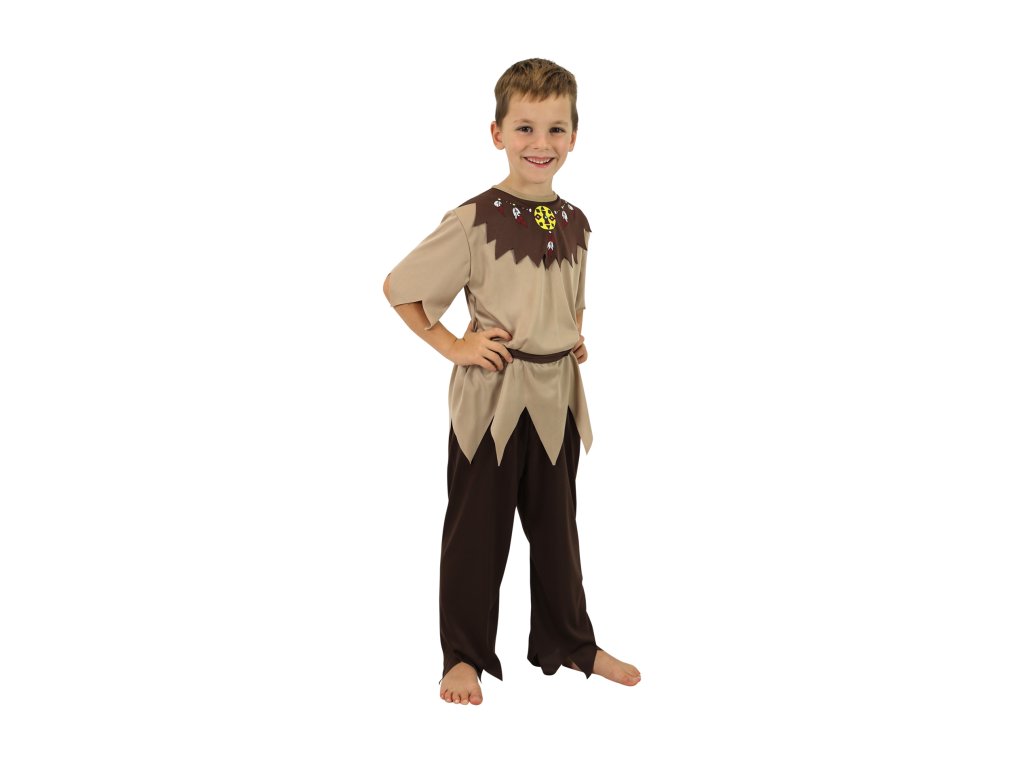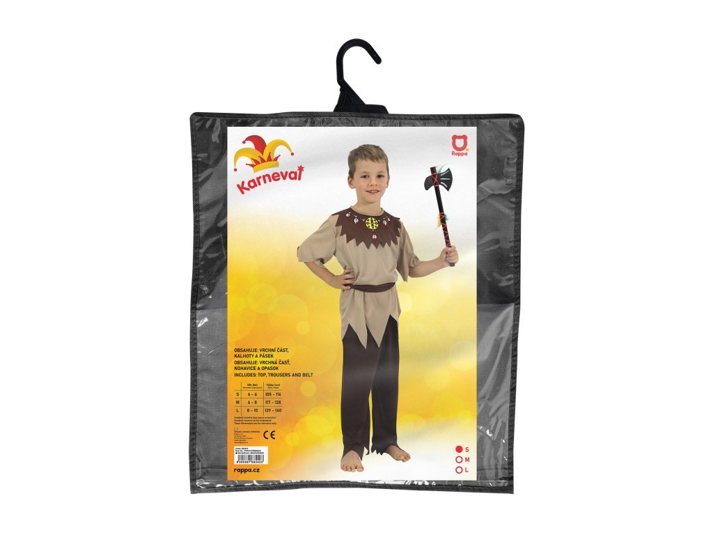 Stylový karnevalový kostým s motivem indiána! Kostým hnědé barvy ve velikosti S je určen pro chlapečky ve věkovém rozmezí 4-6 let (110-116 cm). Balení obsahuje horní díl s indiánským vzorem, kalhoty a pásek.