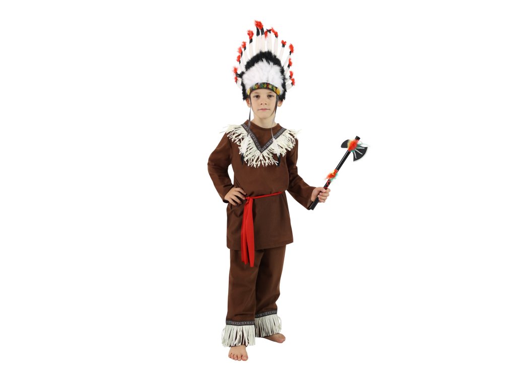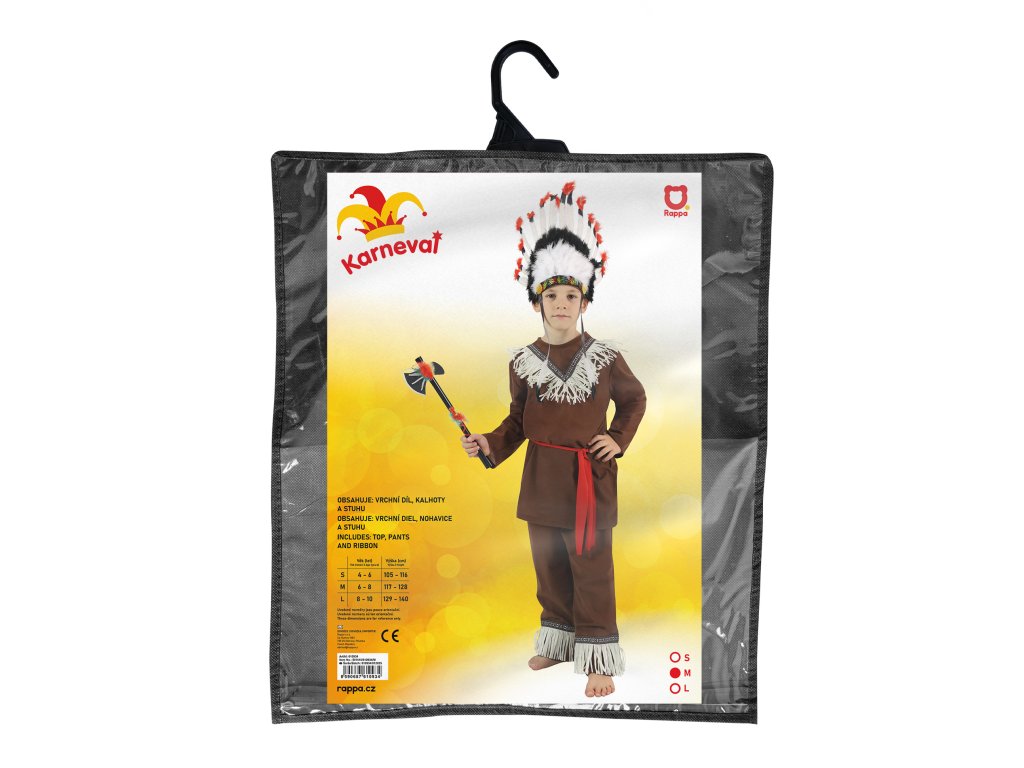Stylový karnevalový kostým s motivem indiána! Kostým hnědé barvy ve velikosti M je určen pro chlapečky ve věkovém rozmezí 6-8 let. Balení obsahuje horní díl s indiánským vzorem, kalhoty a červený šátek. Oba díly jsou zdobeny střapci. Staň se největším frajerem karnevalového večírku díky tomuto kostýmu a ohrom tak všechny své kamarády!