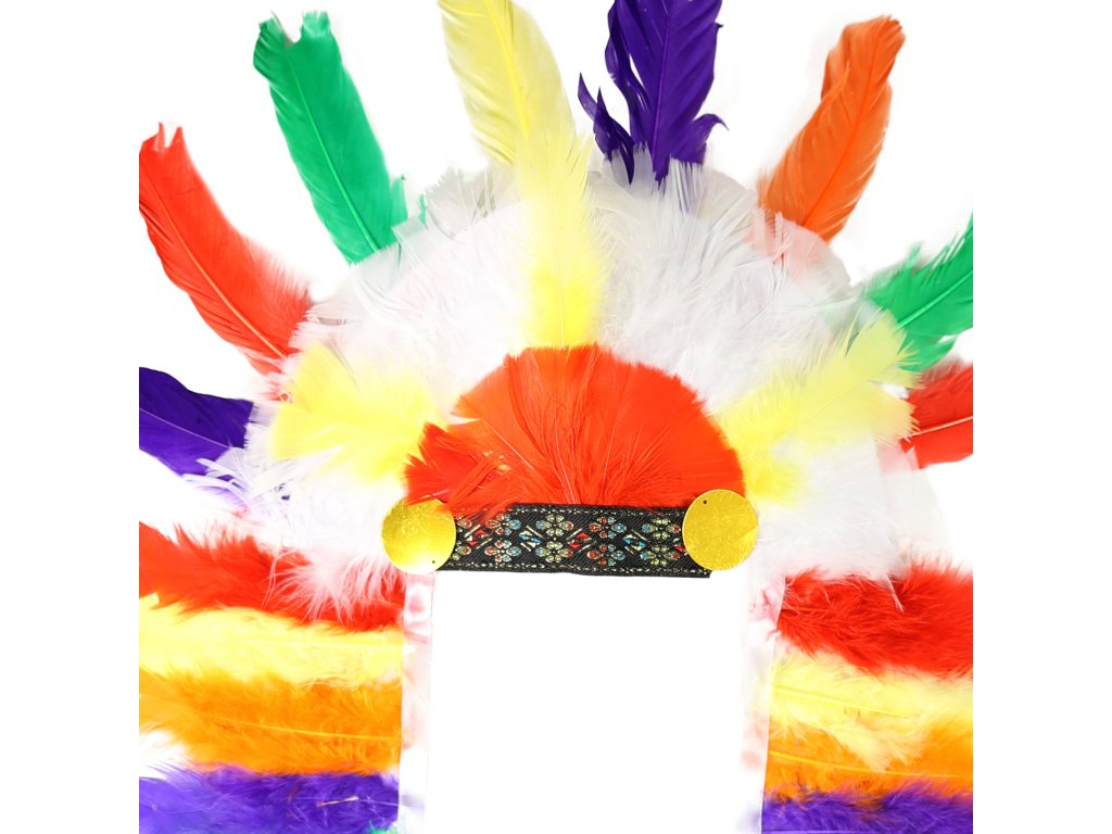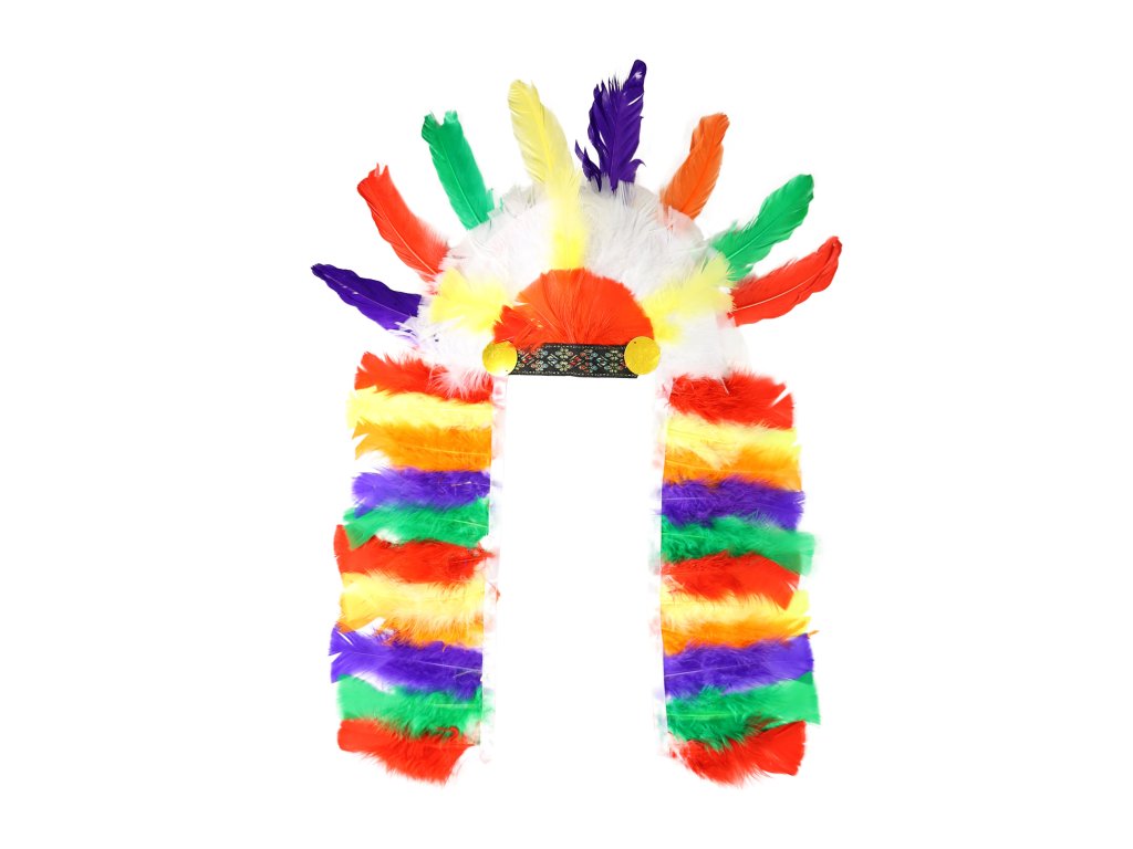 Senzační karnevalová čelenka pro opravdové indiánské náčelníky! Tento parádní kousek je zdoben barevnými hebkými pírky. Čelenka s indiánským vzorem je perfektním doplňkem ke kostýmu indiána.