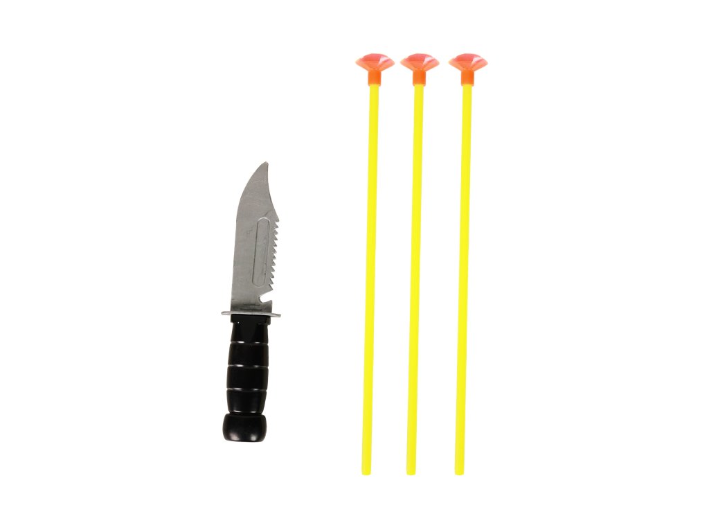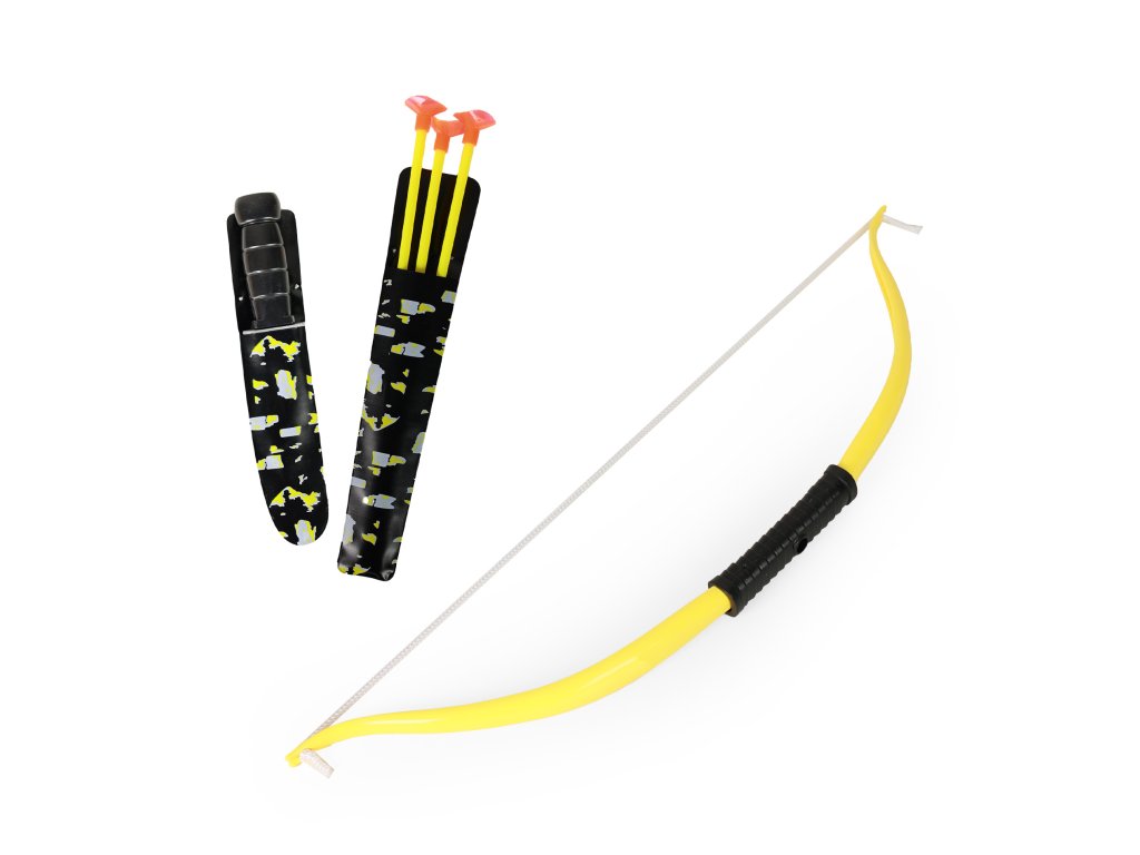 Natáhni, zamiř a střílej! Tato lovecká sada obsahuje úchvatný luk, 3 barevné šípy s přísavkami v obalu a nůž. Vše je vyrobeno z plastu. Tětivu je nutné zkrátit tak, aby byla dostatečně napnutá.