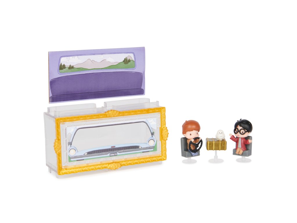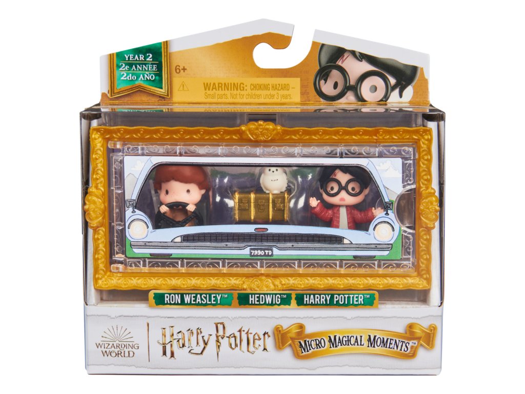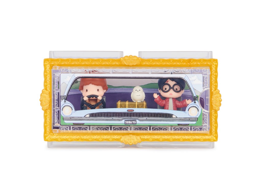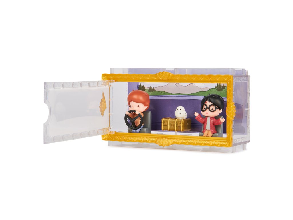Multibalení obsahuje figurky Harryho Pottera, Rona Weasleyho a Hedviky o velikosti 3,81 cm, průhlednou krabičku a tři stojany na figurky. Rozbalte své postavy a objevte jejich rozkošné detaily: Harry a Ron v létajícím autě s Hedvikou na zavazadlech. Pozadí krabičky zobrazuje kouzelné auto Weasleyových, které vypadá, jako by v něm postavy seděly, což je detail, který si fanoušci a sběratelé Harryho Pottera zamilují. Postavy si můžete vystavit na stojanu, v krabičce nebo je postavit samostatně. Rozměr balení: 13x12,7x4,8 cm. Věk 6+