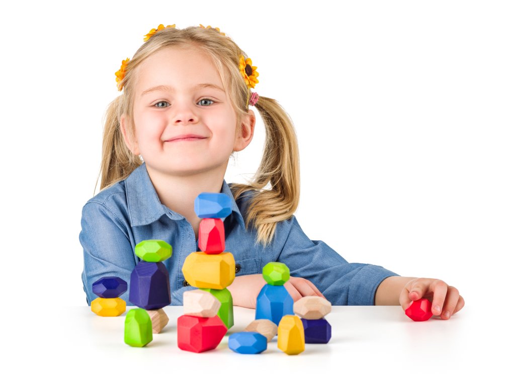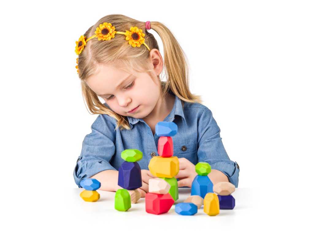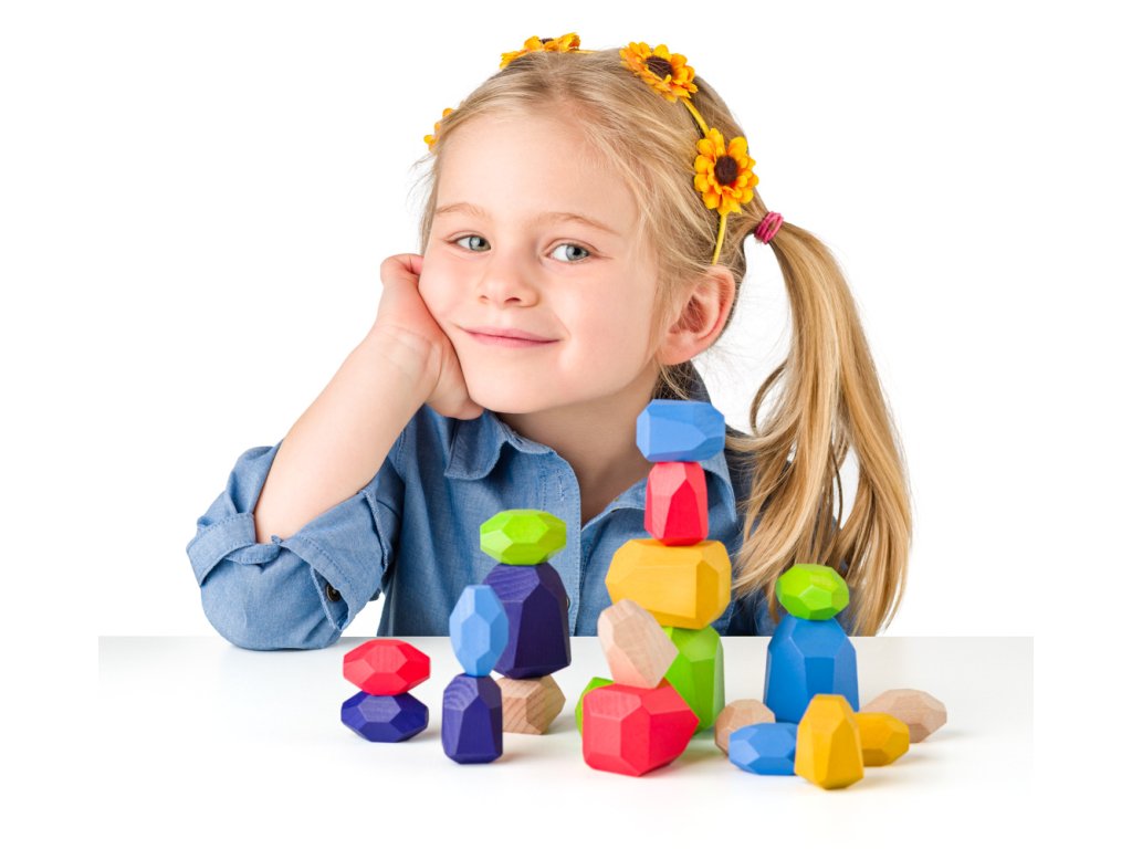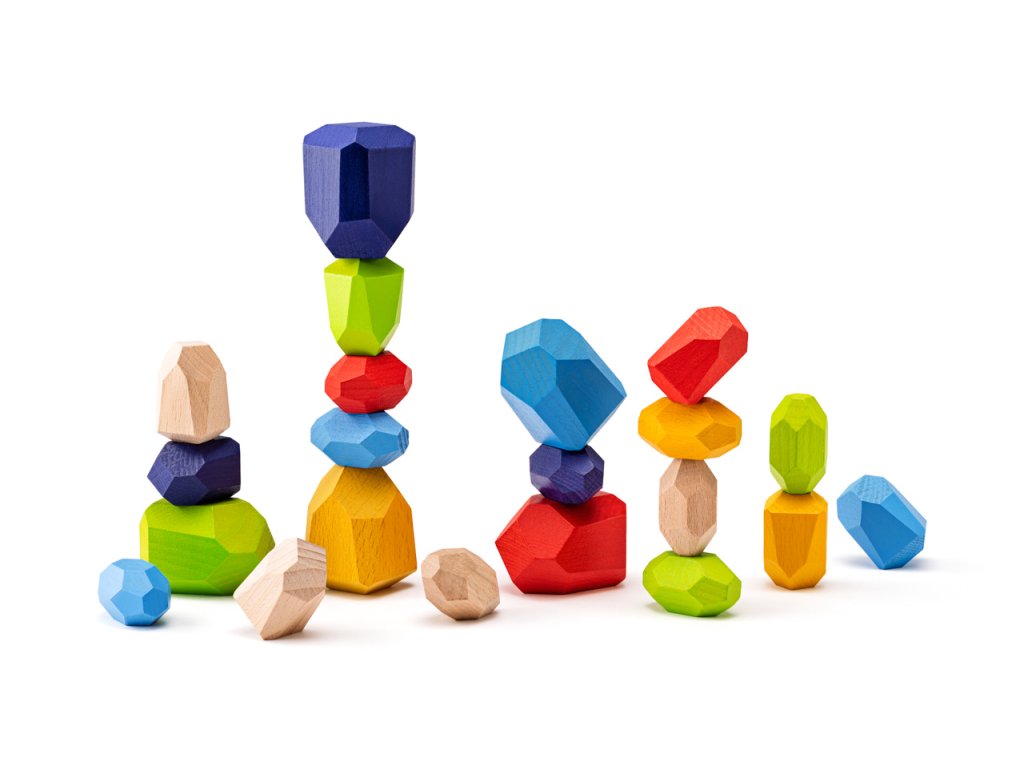 Motorická balanční hračka ze dřeva. Děti mají za úkol postavit na sebe co nejvíce dřevěných kamenů tak, aby věž z nich nespadla. Kameny jsou speciálně zpracované tak, aby plošky, na kterých stojí, byly stabilní pouze v konkrétních polohách pro konkrétní plošky dalších kamenů. Proto je třeba využít nejen motorické, ale i logické schopnosti a kombinatoriku . | Věk: 3+