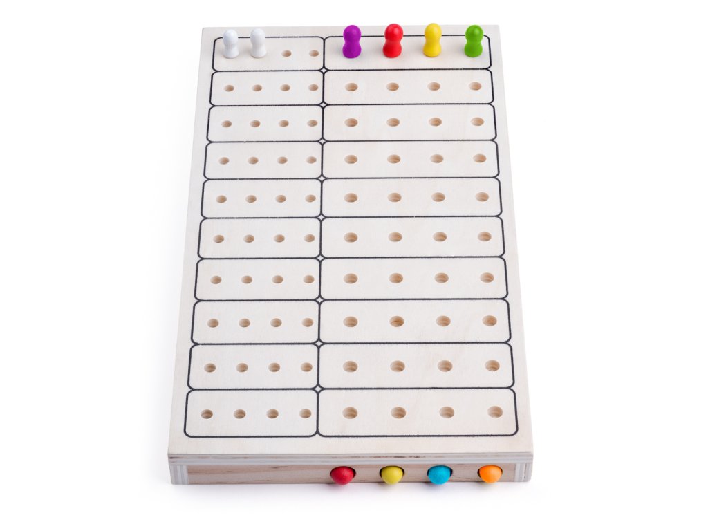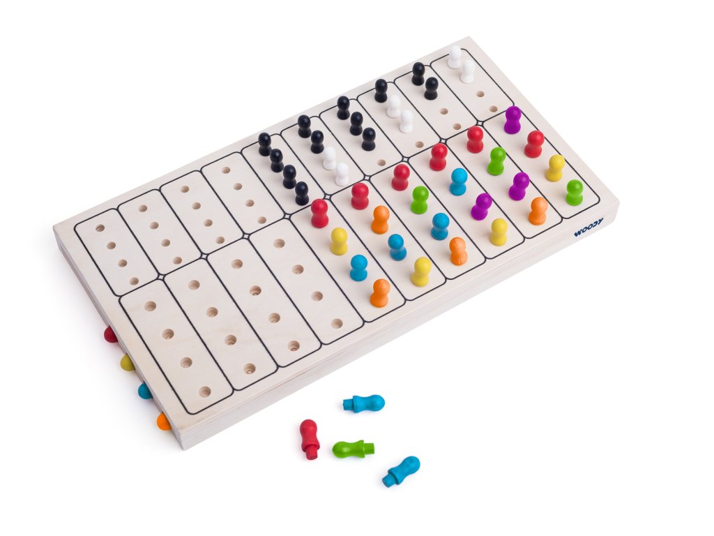 Hra na procvičení logiky a kombinatoriky. Na začátku hry první hráč tajně umístí libovolnou kombinaci čtyř barevných kolíčků do skryté části pod hrací desku. Druhý hráč se tuto kombinaci snaží uhodnout tím, že vytváří kombinaci čtyř kolíčků postupně v jednotlivých řadách na hrací desce. První hráč každý jeho pokus vyhodnotí pomocí malých hodnotících kolíčků a to následovně: za každý hrací kolíček, který hádající hráč umístil ve správné barvě na správné místo, přidělí černý kolíček, za každý hrací kolíček, který hádající hráč umístil ve správné barvě, ale na špatné místo, přidělí bílý kolíček. Hádající hráč neví, za který hrací kolíček byly přiděleny hodnotící kolíčky. Hra končí, když hádající hráč uhodne kombinaci (vítězný pokus je tedy ohodnocen plným počtem černých kolíčků). Hráči si pak vymění role a hra pokračuje. Vítězem se stane hráč, který k uhodnutí potřeboval méně pokusů. Věk: 3+. Rozměr: 30,5 x 16,5 x 2,5 cm.