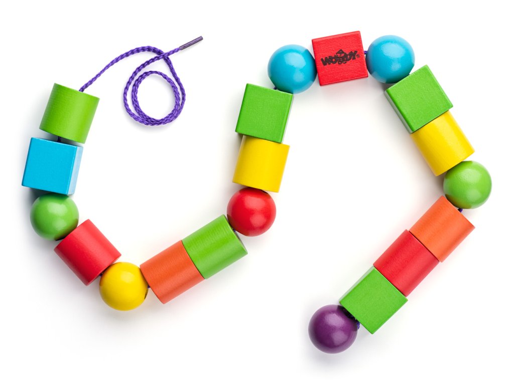 Věk: 3+ | Počet kusů: 60 | | Navlékací korále pomáhají dětem se učit přesnosti, trpělivosti, rozvíjí jemnou motoriku, koordinaci pohybu a fantazii. Navlékání je oblíbenou dětskou činností a proto je po těchto hrách stále poptávka. Set obsahuje dřevěné korále, které jsou velikostí uzpůsobeny zručnosti malých dětí. V balení jsou 2 navlékací šňůrky. Rozměr korálků: 3cm