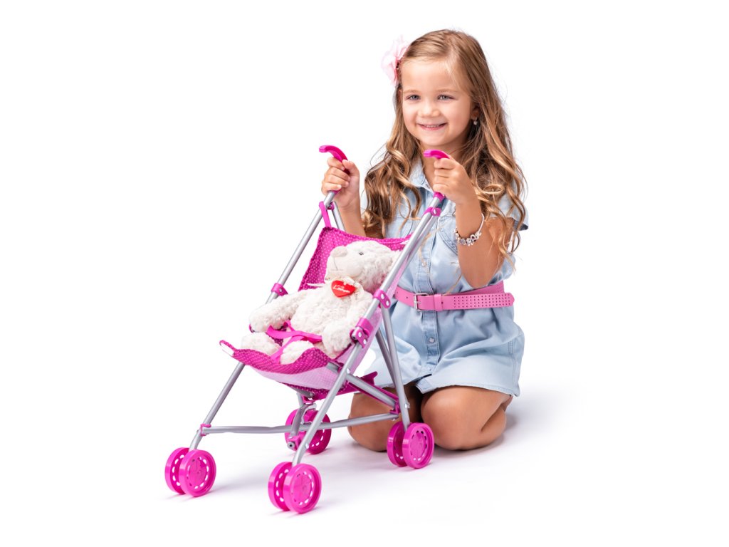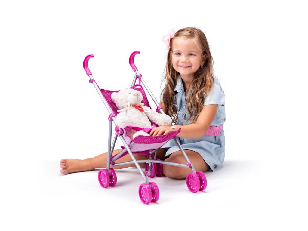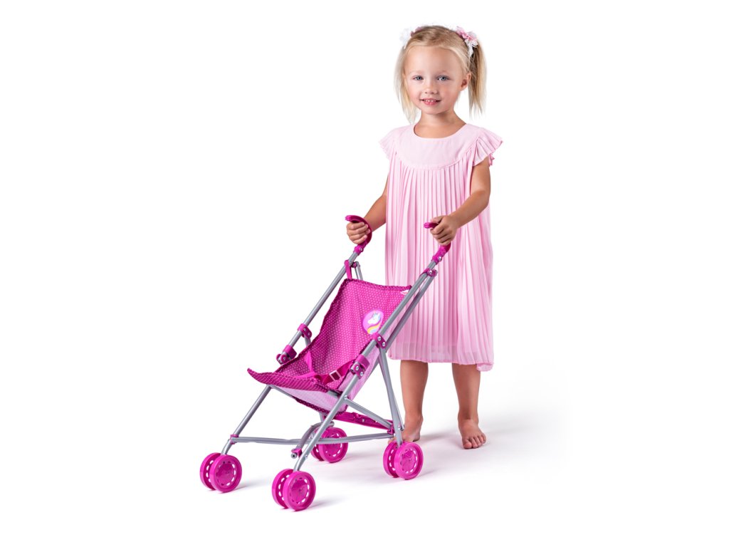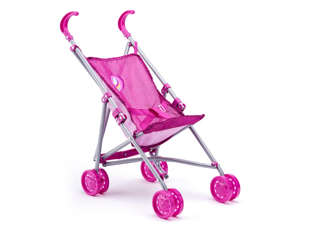 Design kočárku s jednorožcem reaguje na aktuální módní trend. Jednorožce holčičky prostě milují! Golfky jsou vyrobeny z kombinace materiálů: látka, kov a plast. Velmi jednoduchý mechanismus umožňuje skládání a opětné rozkládání golfek. Tato hračka je doporučena pro holčičky, které si rády hrají a vžívají se do role dospělých maminek. Hra podporuje představivost, rozvíjí sociální cítění, pamět a hrubou motoriku. | Velikost složeného výrobku je: délka 48 x hloubka 25 x výška 55,5 cm | Věk: 3+