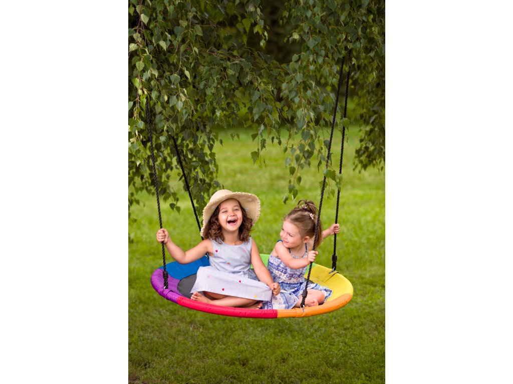 Ta nejlepší volba pro vaši zahradu! Houpačka vás překvapí svým komfortem a velikostí. Plachta uvnitř konstrukce zajistí pohodlné posezení bez otlačení :-). Kruh slouží nejen k houpání, ale i k relaxaci. Průměr: 100 cm, délka lan: 95 x 155 cm. Nosnost: 100 kg. Věk: 3+