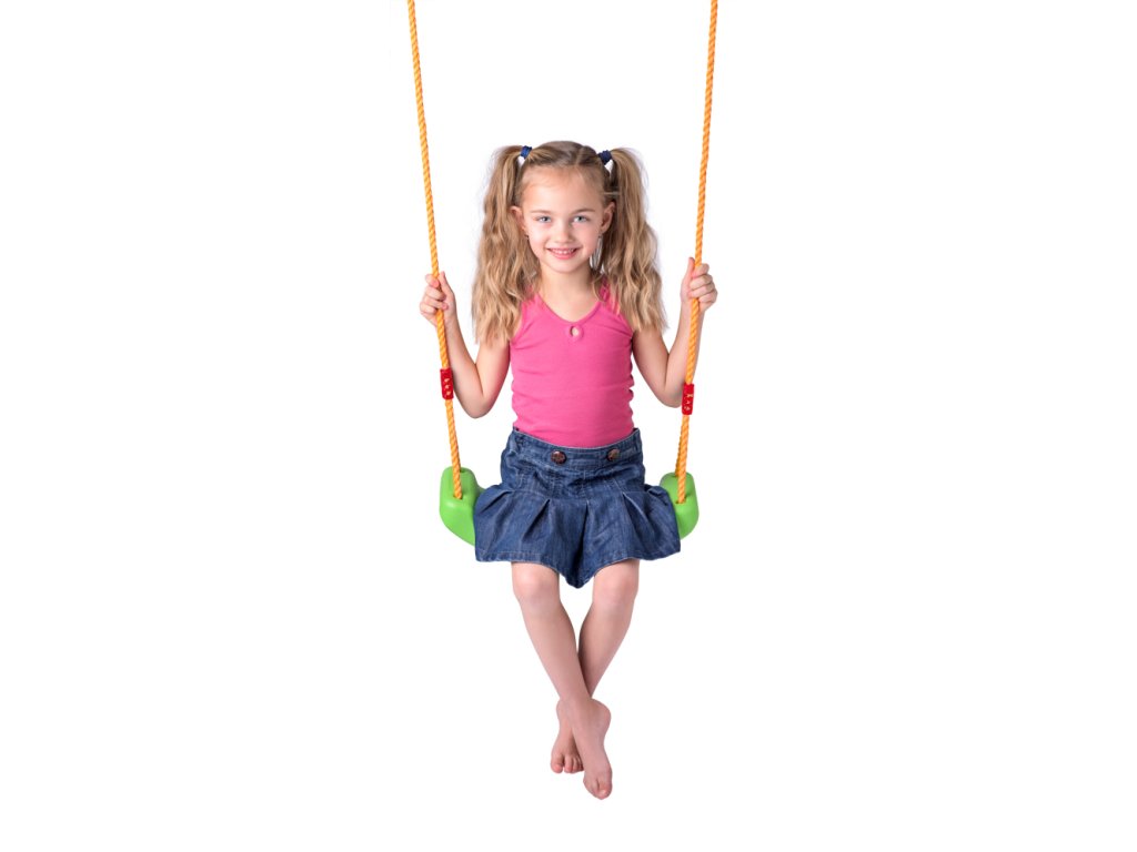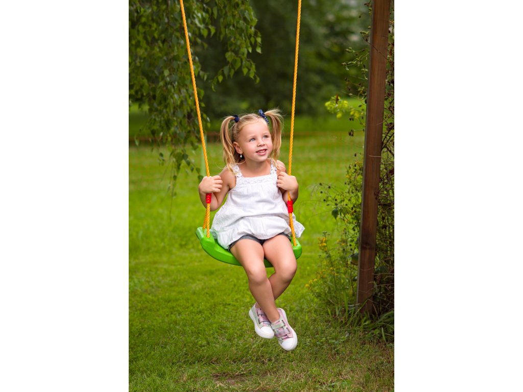 Klasická jednoduchá houpačka na zavěšení- plastové prkénko v zelené barvě. Houpačka bez podpěrek umožňuje větším dětem více pohybu a volnosti a způsobů houpání. Rozměr sedátka: 42 x 17cm. Délka provazů: 1,3-2,1 m (Nastavitelná délka lana.) Pro zavěšení na bezpečnostní (nejlépe točivé) háky. (Háky nejsou součástí balení). Nosnost: do 80 Kg. Věk: 3+