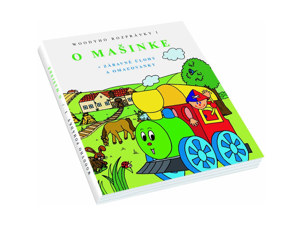 Rozprávková knížka s príbehom O mašinke so zábavnými úlohami a omaľovankami.