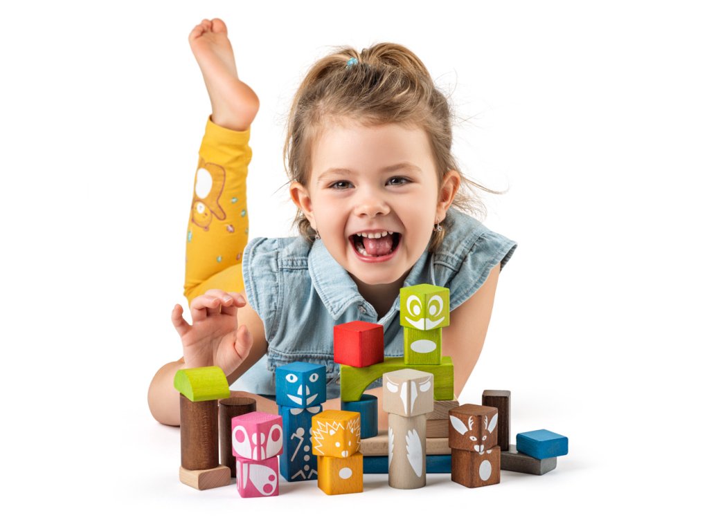 Kostky s potiskem umožňují dětem dále rozvíjet hru s kostkami, vytvářet z nich zvířátka, hrát s nimi různé role. Kostky jsou od českého návrháře a jsou vyrobeny v Čechách.| Věk: 1+ | Rozměr krychle: 3,3 cm