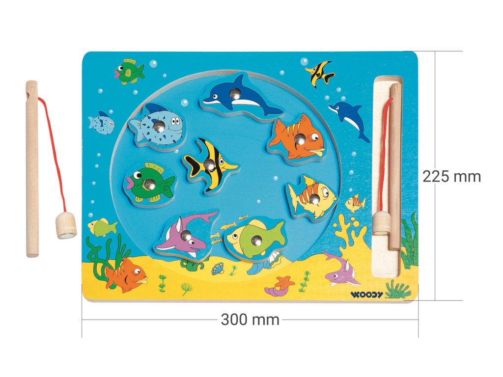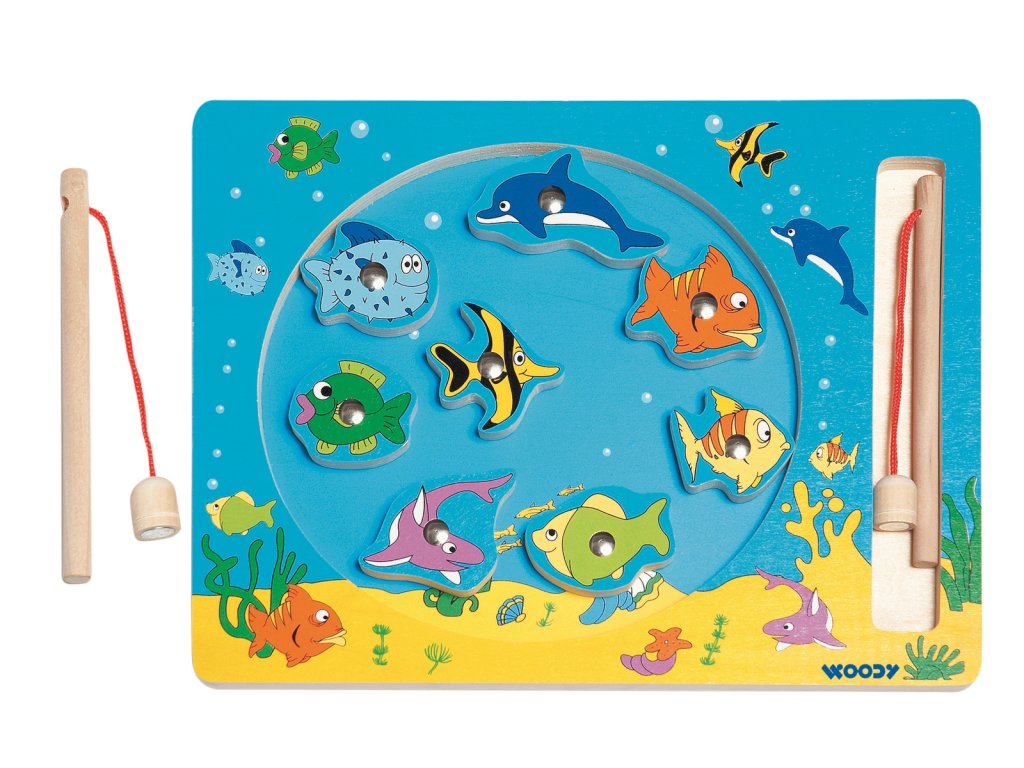 Věk: 3+ | Rozměry: 30 x 23 cm | Barevné dřevěné rybičky mají v sobě kovový dílek, za který je ulovíte magnetickou udicí. Hra je vhodná na procvičování motoriky a trpělivosti.
