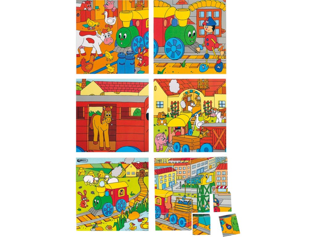 Šestnáct kostek, které poskládáním vytvoří jeden ze šesti obrázků. Hra je vhodná pro trénování trpělivosti dětí. Kostky jsou uloženy ve dřevěné krabičce. | Věk: 3+ | Rozměr:20 x 20 cm
