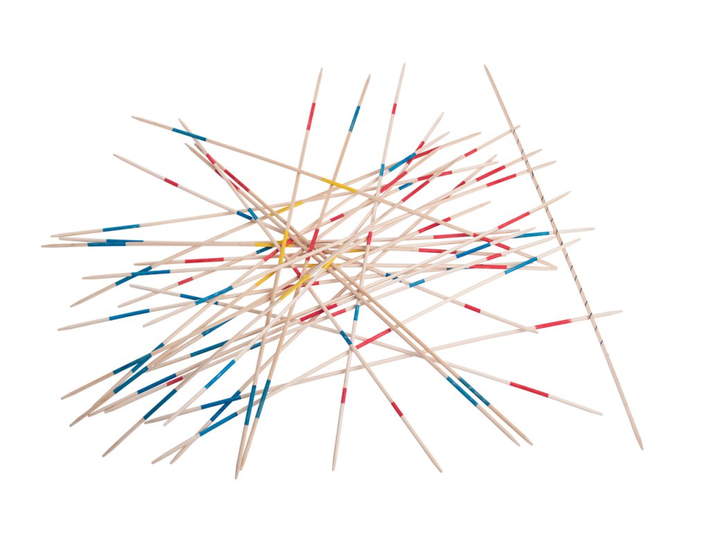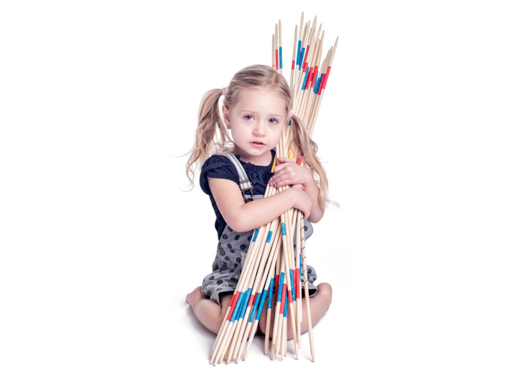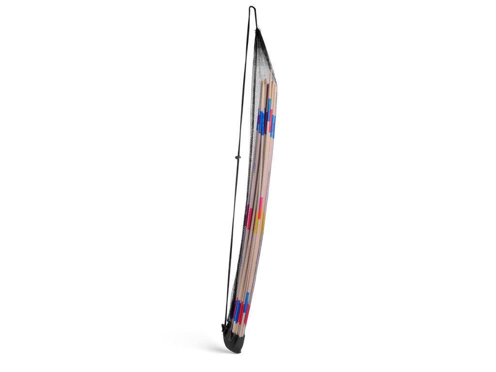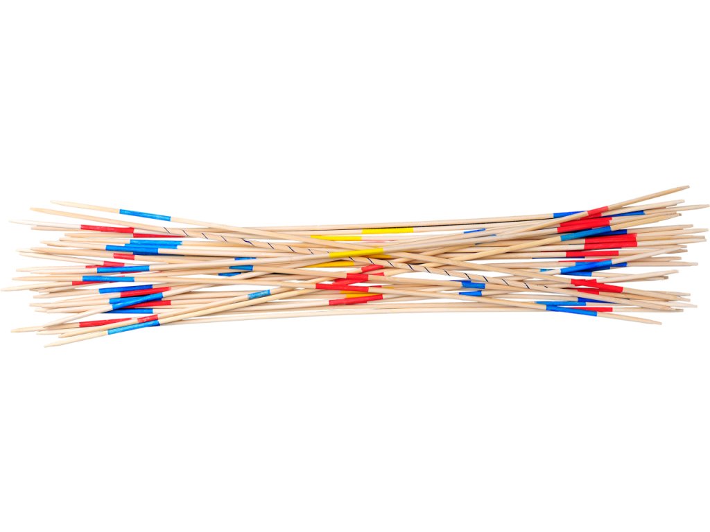 Mikádo na zahradu či do dětského pokojíku. Podržte všechny tyčky, tak aby směrovaly nahoru. Potom je nechte volně padnout tak, aby se rozložily na zemi. Úkolem je získat postupně co nejvíce tyček, aniž by se jedna druhé dotkly nebo se pohnuly. Kdo získá tyčku mikáda, může ji použít k nazdvihovování další tyčky. Pokud se však jiná tyčka pohne, nesmí hráč pokračovat. Tyčku, kterou chtěl právě vzít, musí nechat ležet. Body se sčítají podle druhů tyček tak, jak je uvedeno v návodu. Hráč, který nasbírá na konci nejvíce bodů, vyhrává. Pro skladování a přenášení je výrobek vybaven černým síťovým vakem. | Rozměr tyčky: 90 cm | Věk: 3+