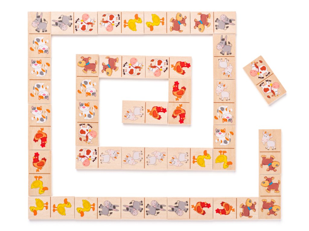 Věk: 3+ | Rozměry: 12 x 7 cm | Malé dřevěné domino s obrázky zvířat.