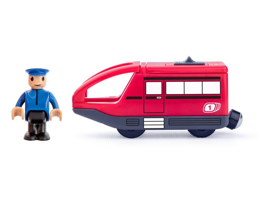 Přepínač lokomotivy s předním a zadním pohonem je umístěný na její střeše. Součástí tohoto výrobku je i strojvedoucí umístěný v kabině lokomotivy. Lokomotiva je kompatibilní se všemi našimi i ostatními vláčkodráhami dostupnými na našem trhu. Jednotlivé vagony se dají spojit magnetem. Věk: 3+ | Rozměr: 10 x 4,5 cm